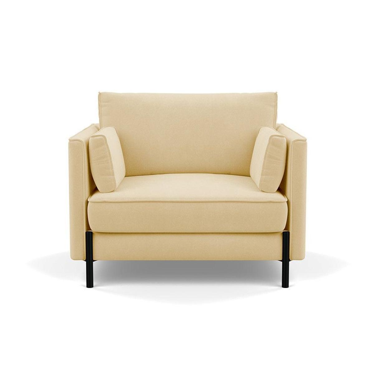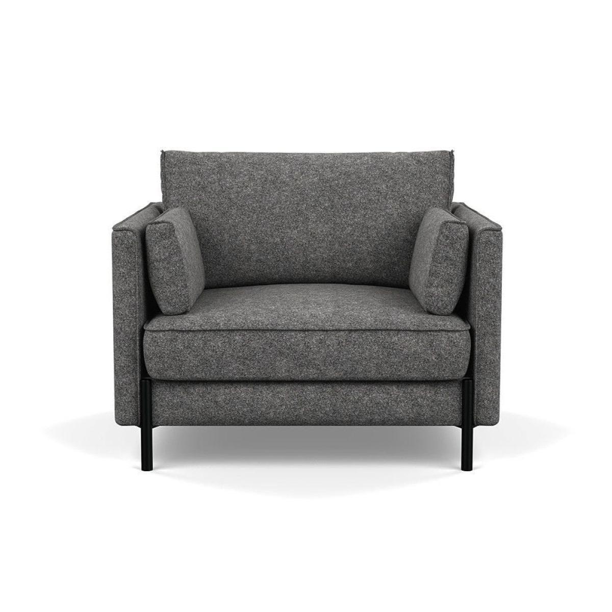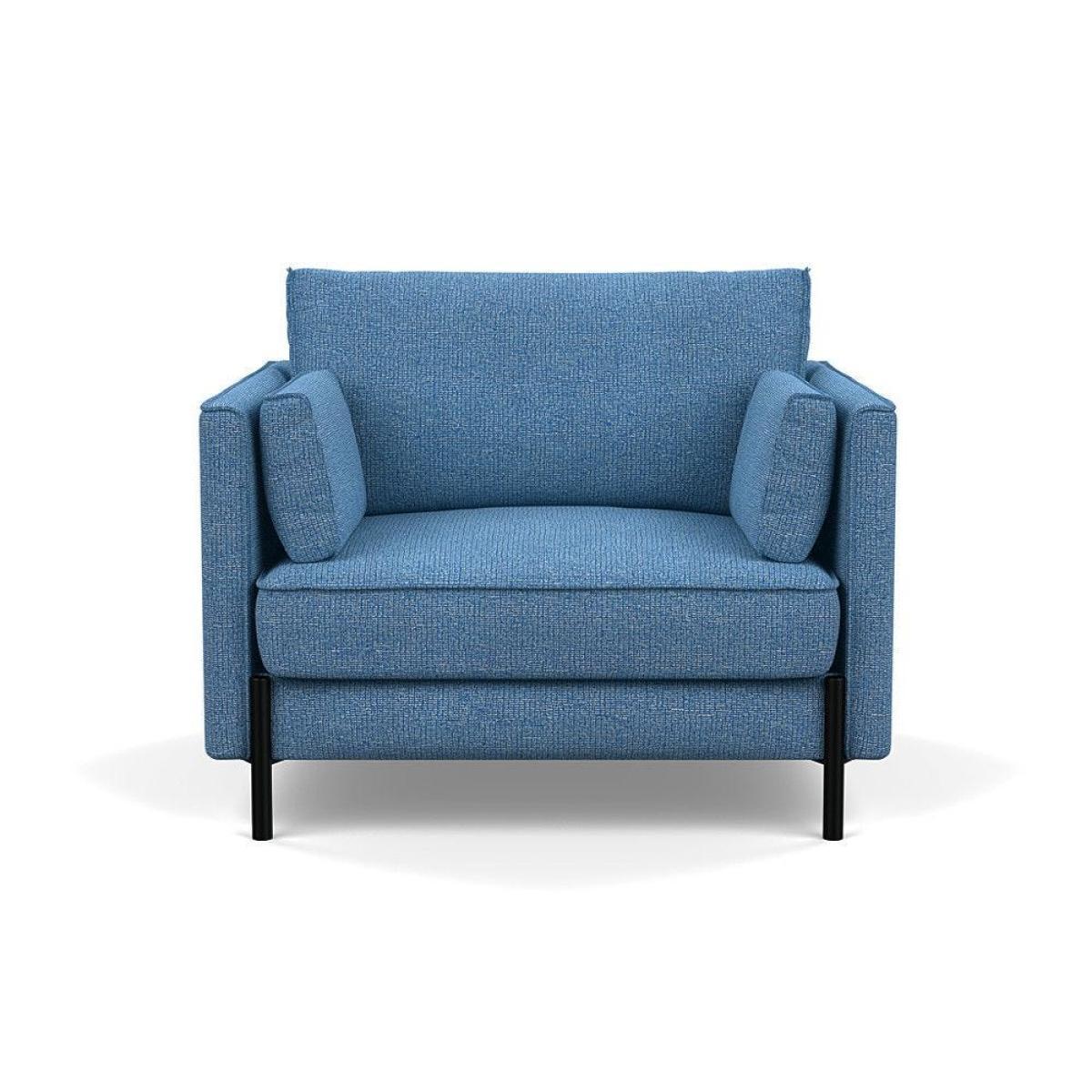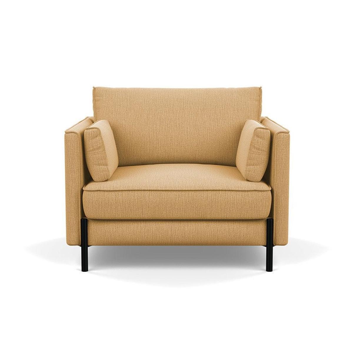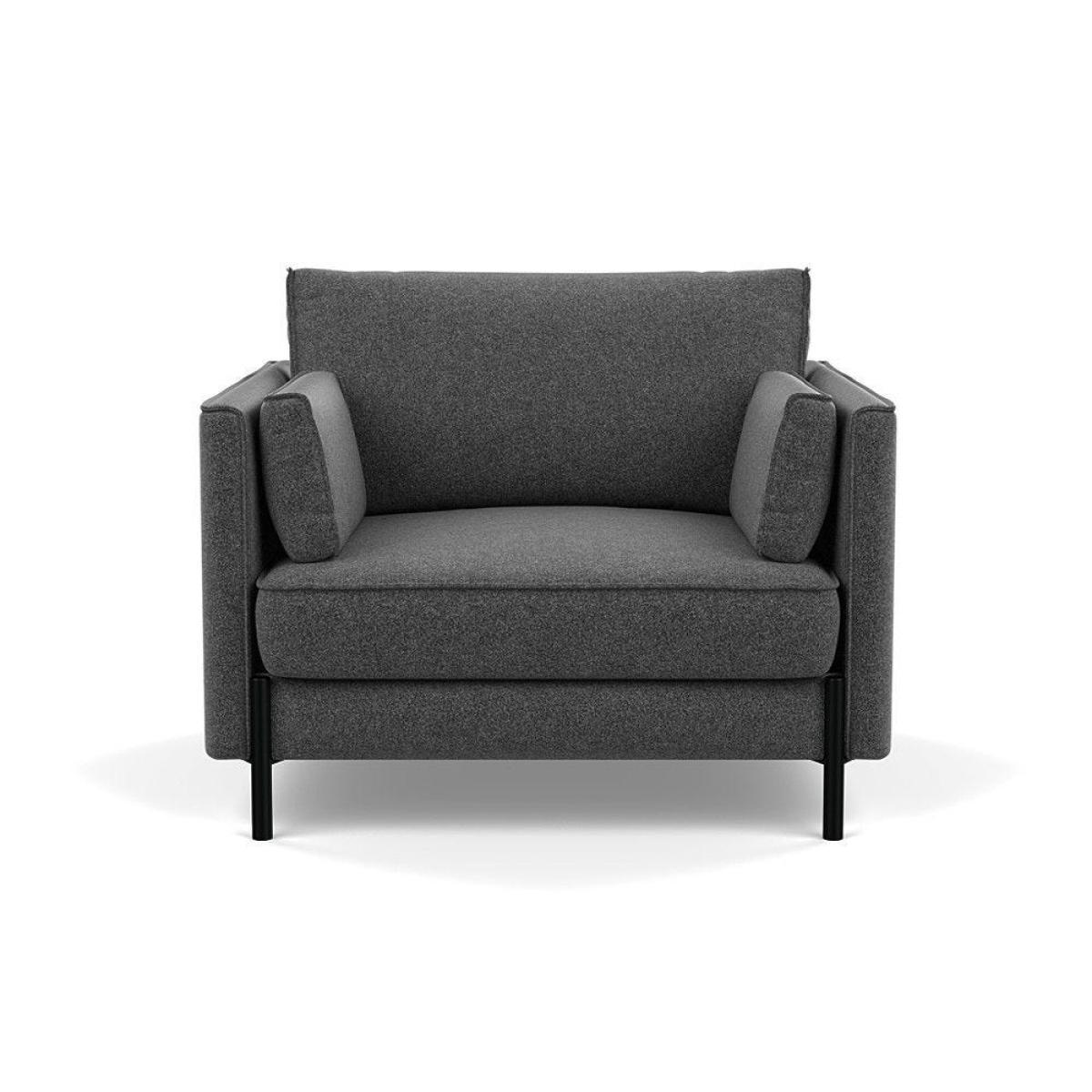 Designed by Danish duo Says Who exclusively for Heal's, the Tortona Armchair is a pared back yet intricately designed piece. The armchair features deep foam seat cushions wrapped in duck feather jackets for a soft-to-medium feel. Slim arms add to the elegant design and create a generous space for seating and extra scatter cushions. Also featuring thin, elegant powder-coated steel legs and French seam detailing creating a neat profile which will sit well in any modern home.