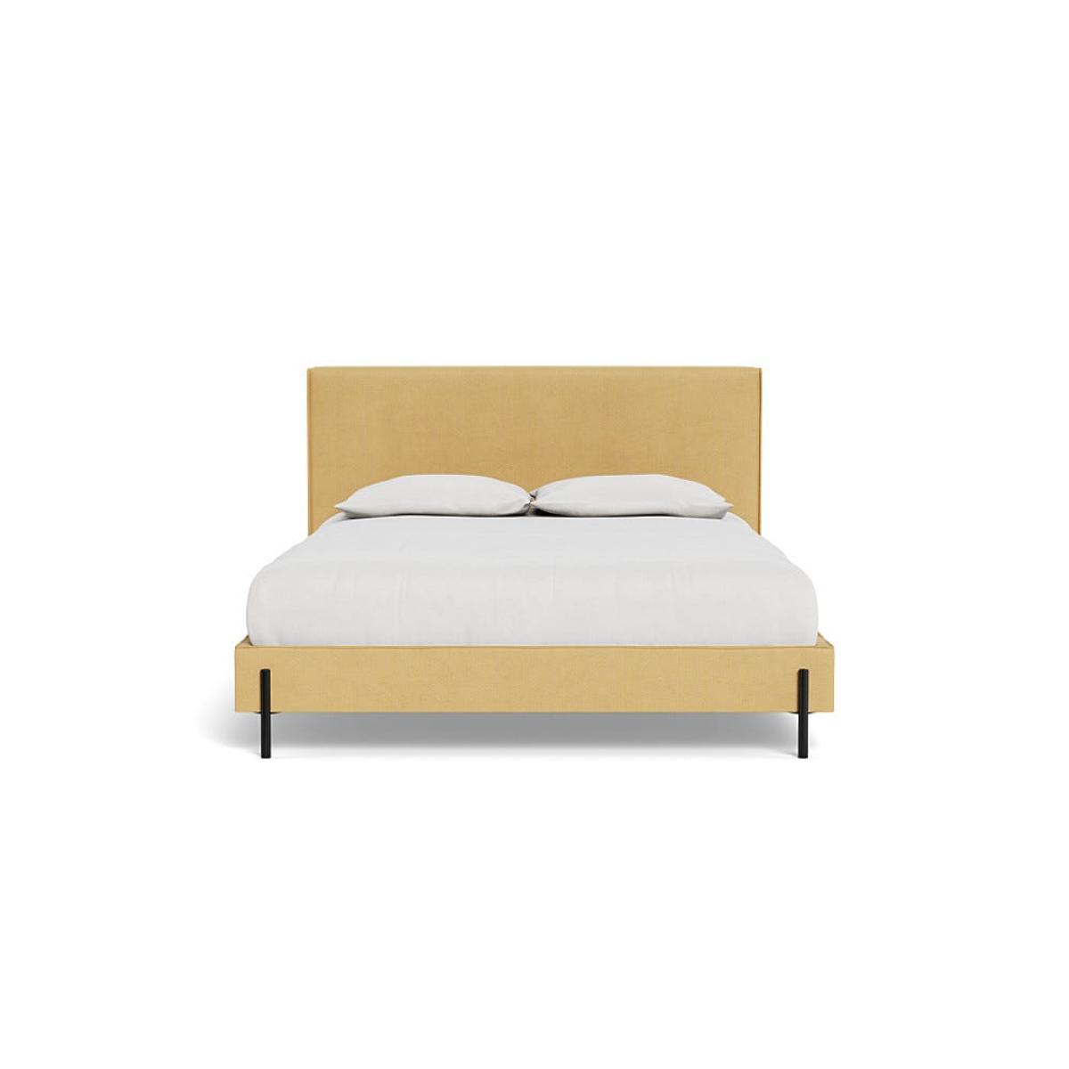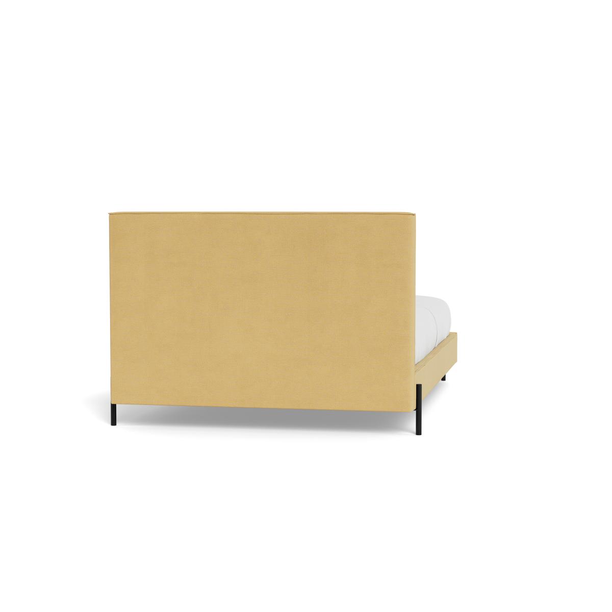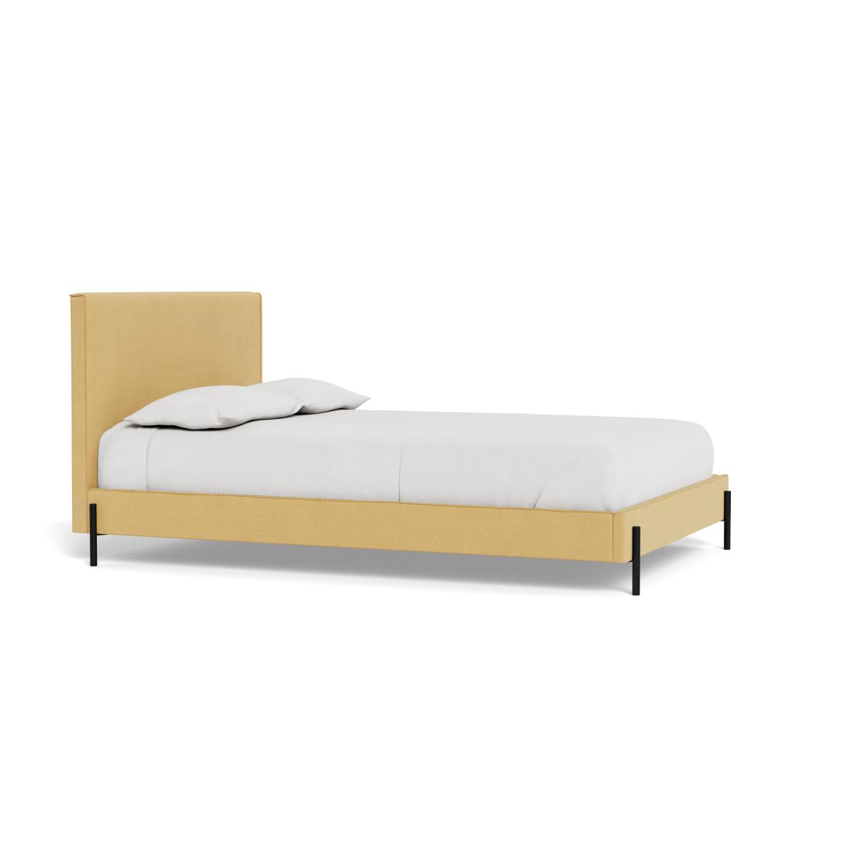 I love this one for its clean, modern silhouette and versatile colour palette. The mustard tone combined with black feet gives it a contemporary edge that can anchor a neutral or bold interior. It works well in minimalist schemes, mid-century inspired bedrooms, or even eclectic spaces when styled with layered textures and statement bedding. Practical styling tips include keeping bed linens crisp and simple to highlight the frame, or adding plush throws and cushions for a cosy, inviting look. Its understated design allows it to blend seamlessly with various décor styles, making it a reliable centrepiece that enhances the overall aesthetic without overpowering the room.