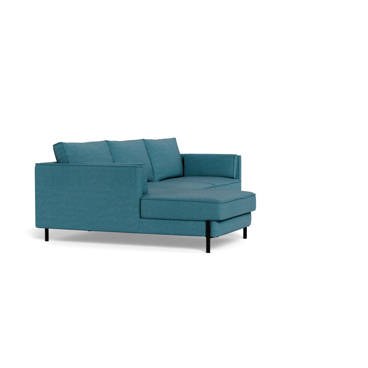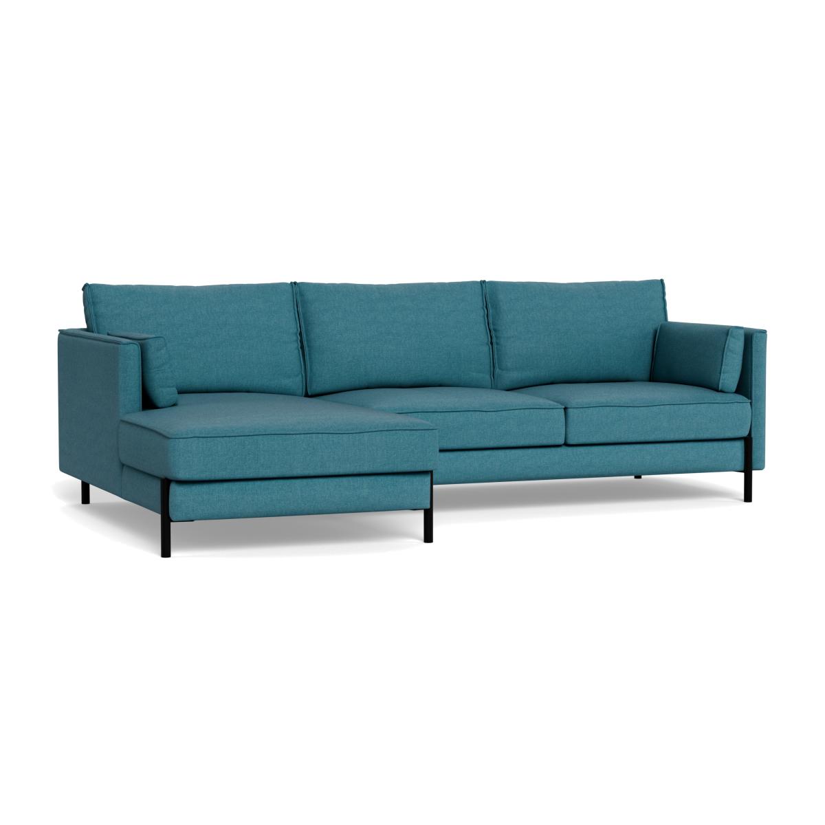 I love this sofa for its versatile design and contemporary appeal. The Tortona in ceramic blue is ideal for creating a focal point in modern or minimalist interiors, but it also works well in more eclectic spaces when paired with textured fabrics and bold accessories. Its brushed cotton upholstery adds a softness and durability, making it practical for everyday living. When styling, consider pairing it with mid-century inspired side tables or layered throws and cushions in complementary tones to add depth. Its left-hand facing chaise makes it perfect for creating cosy corners or family living areas, and the sleek black feet keep the look grounded and sophisticated. Overall, it’s a great choice for those wanting a stylish, functional, and adaptable piece of furniture.