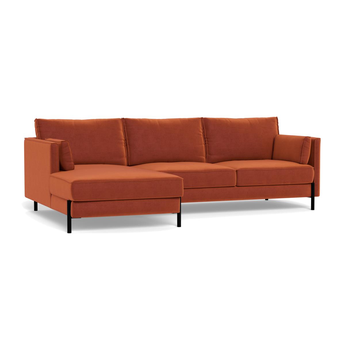Heal's Tortona Left Hand Facing Corner Chaise Velvet Russet Black Feet