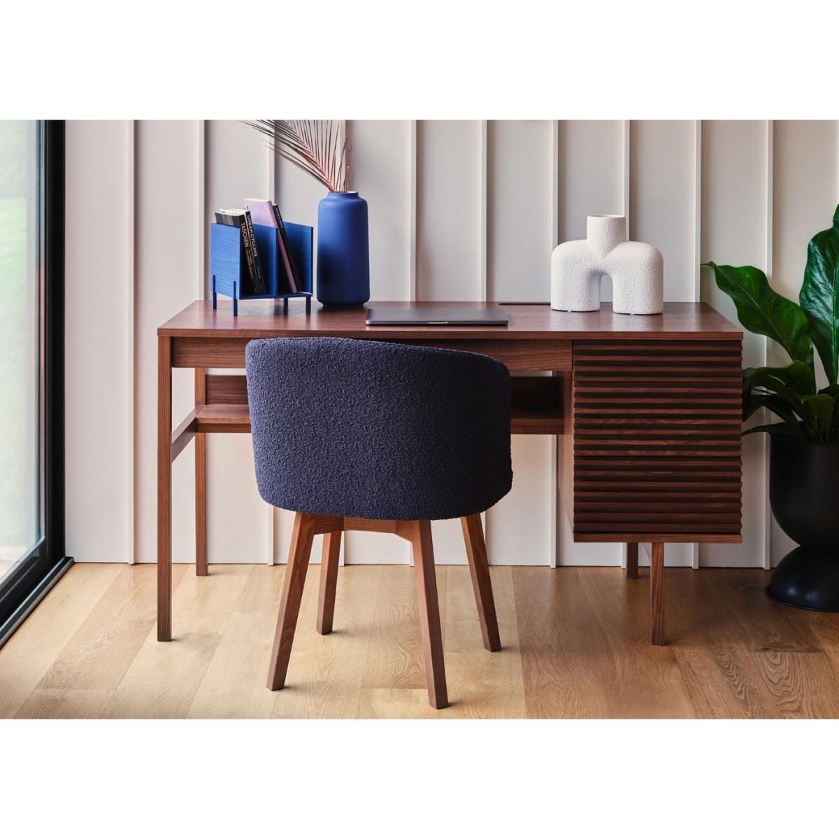 The Verona desk in walnut is a versatile piece that effortlessly combines natural warmth with clean, modern lines. I love how its rich wood finish adds texture and a sense of sophistication to both contemporary and classic interiors. It works particularly well in home offices with a minimalist or Scandinavian aesthetic, but can also bring a touch of luxe to more eclectic or traditional spaces. Practical styling tips include keeping clutter to a minimum and layering with textured materials like linen or wool for a cosy feel. Adding a few curated accessories, such as metallic desk accessories or a statement lamp, can also elevate the look while maintaining functionality.