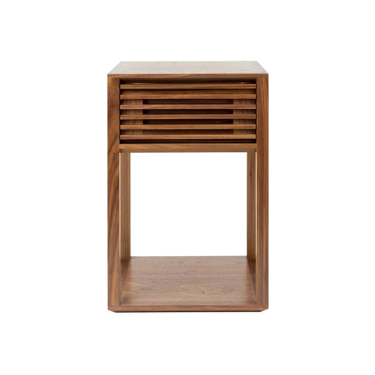 I’m a fan of this walnut side table for its warm tone and clean-lined silhouette - the slatted drawer front adds just the right hint of texture without feeling fussy. It suits mid-century, Scandi or Japandi schemes, and its slim proportions make it ideal next to a sofa or bed in smaller rooms. Styling-wise, I’d top it with a compact table lamp or sculptural vase alongside a small tray for bits and bobs, while the open shelf below works well for a neat stack of books or a woven basket to hide chargers and remotes.