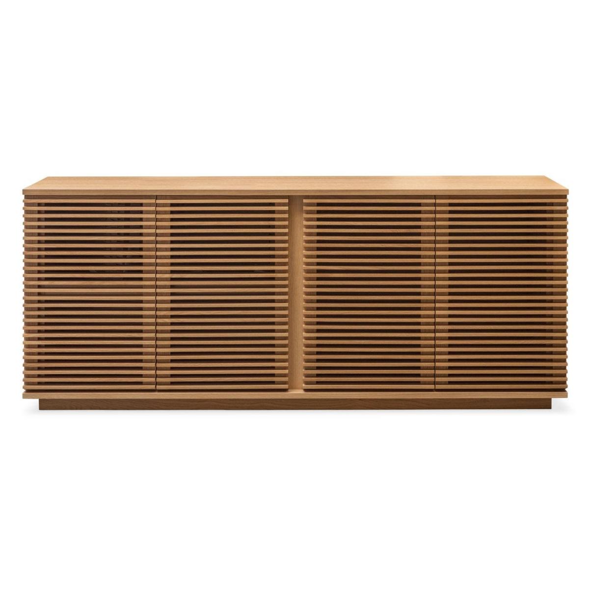 Award-winning designer Nathan Yong created the large Verona Sideboard exclusively for Heal’s. His striking design was inspired by sleek stereo consoles from the 1960s, something that clearly translates into the sideboard’s modern slatted front. Inside, eight compartments complete the design and are perfect for storing dinnerware, glassware and even media appliances. Thanks to the slatted front, you can control any devices inside via remote control even when the doors are closed. The large Verona Sideboard is available in a selection of wood finishes so you can select the perfect one for your home.