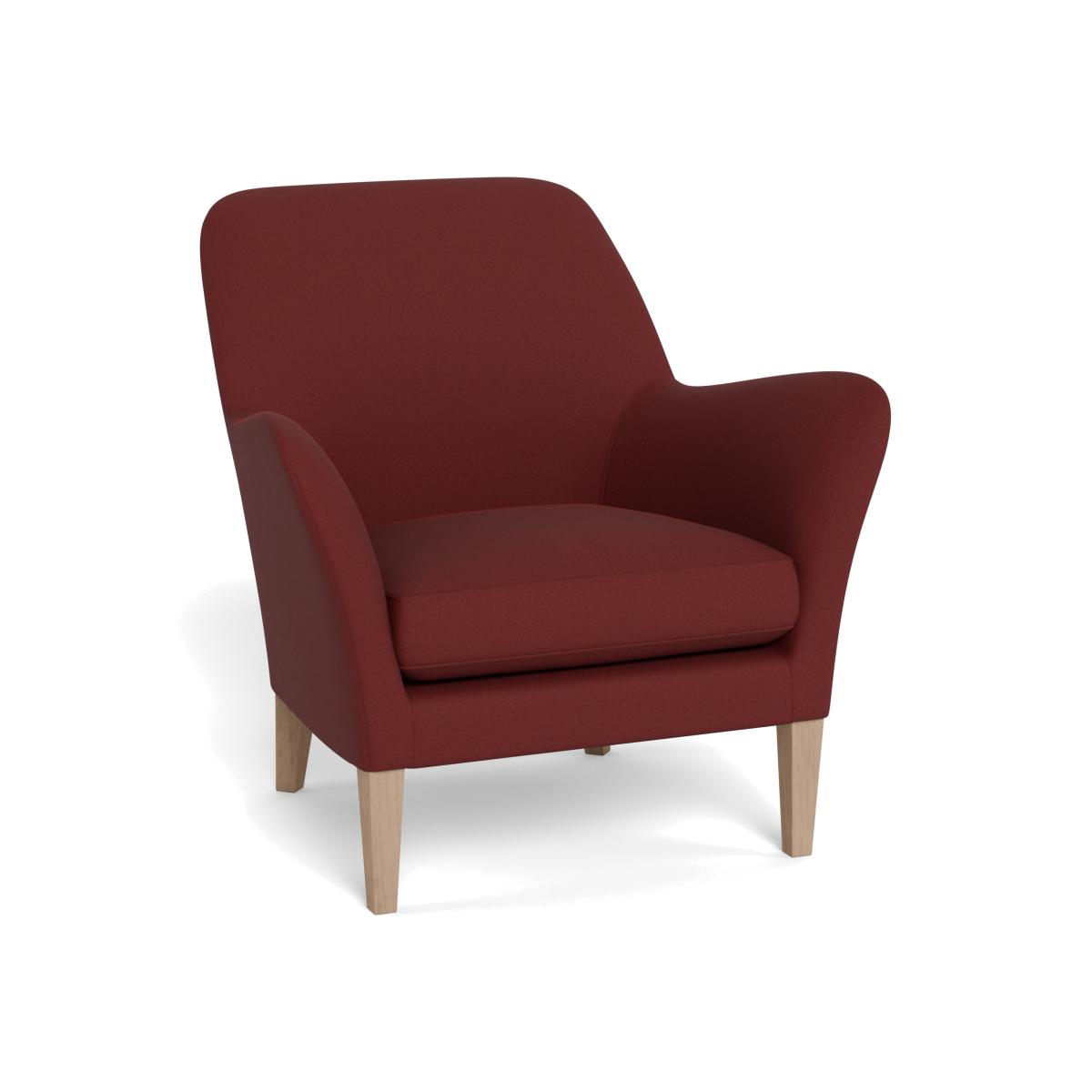 I love this armchair for its versatile colour palette and understated elegance. The Etruscan red and black painted oak feet give it a contemporary yet timeless appeal, making it suitable for both modern and more traditional interiors. It works particularly well in living rooms or cosy reading nooks with neutral tones, where it can serve as a statement piece or a comfortable, welcoming spot. Styling tips include pairing it with textured cushions or a small side table to create a functional seating area. Its compact size also makes it ideal for smaller spaces or for adding an accent chair to larger rooms without overwhelming the space.
