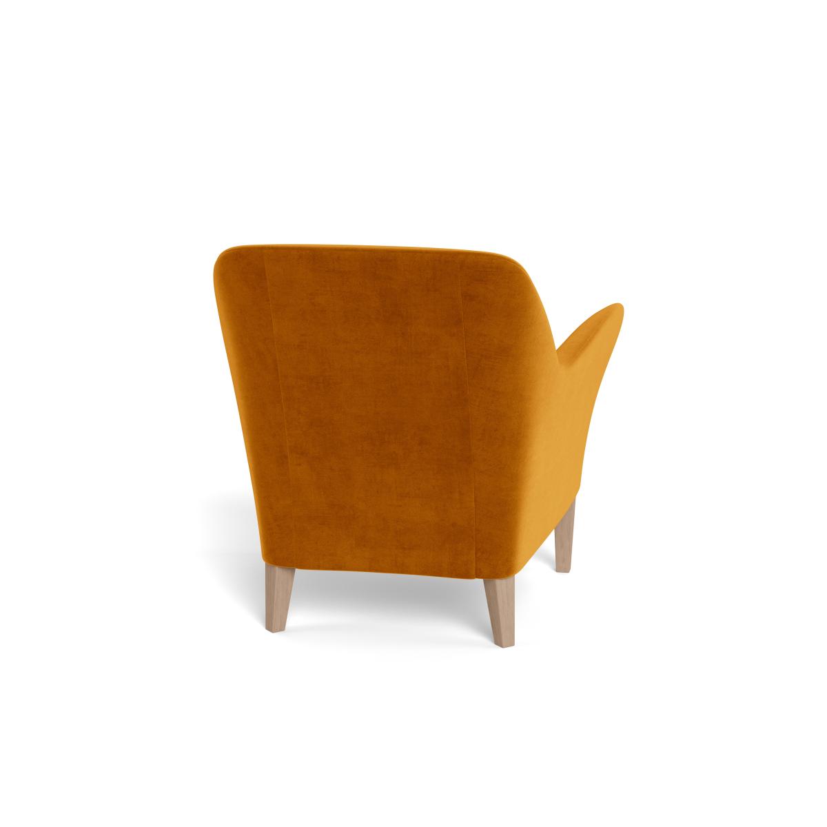 I love this armchair for its bold colour and plush velvet finish, which instantly elevates a room’s aesthetic. The warm cognac tone combined with the luxe velvet adds a touch of sophistication, making it a versatile piece that works well in both contemporary and more eclectic interiors. It’s perfect as a statement piece in a living room or a cosy reading nook. Practical styling tips include pairing it with neutral or muted accessories to let the chair stand out, or adding textured cushions and a small side table for added comfort and visual interest. Its black feet lend a modern touch, grounding the look, and it’s equally suited to spaces with wood, metal, or mixed materials.