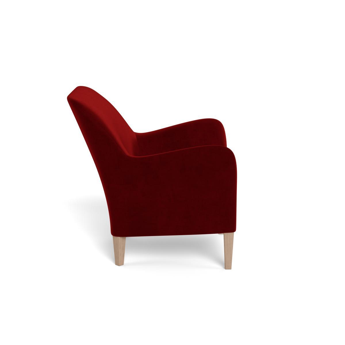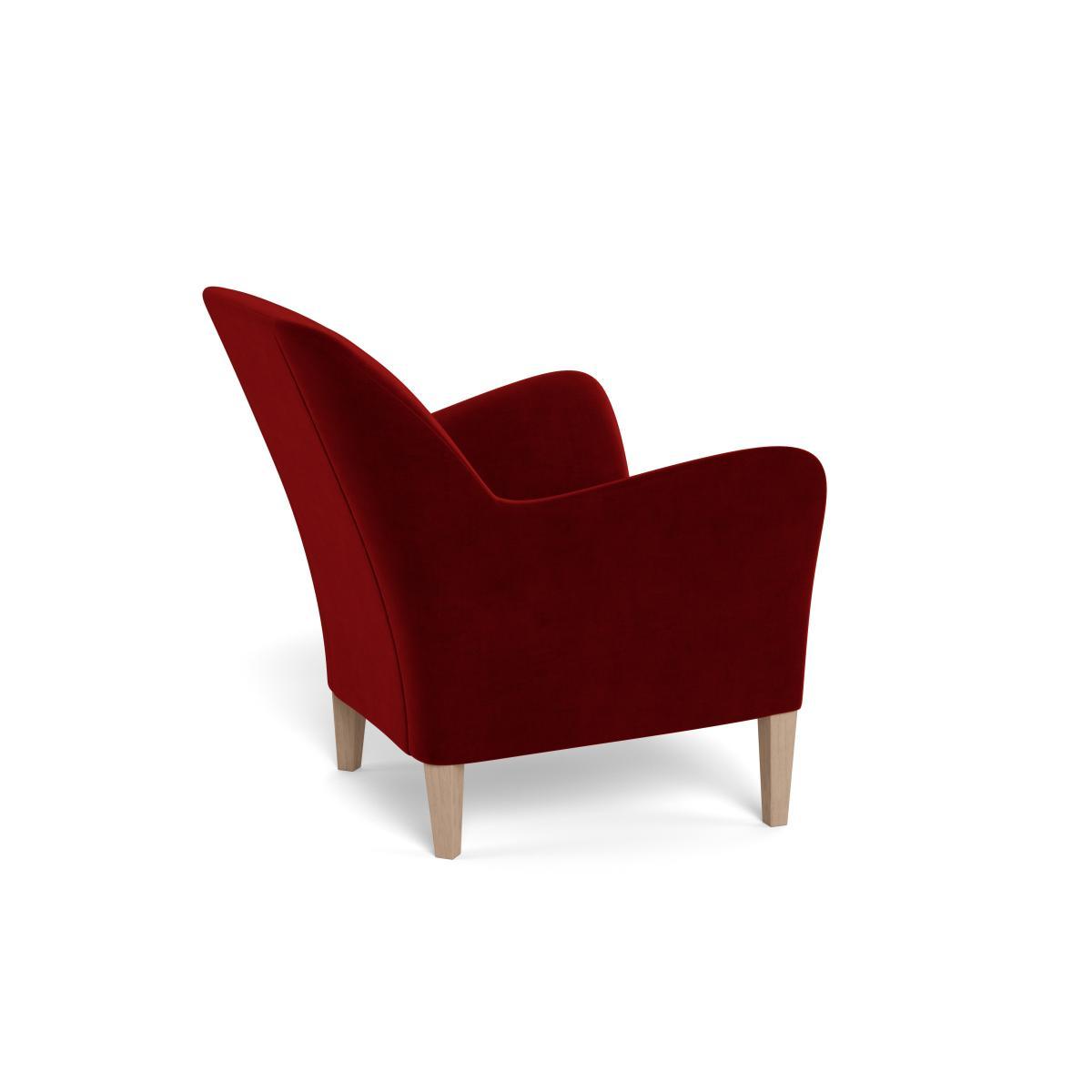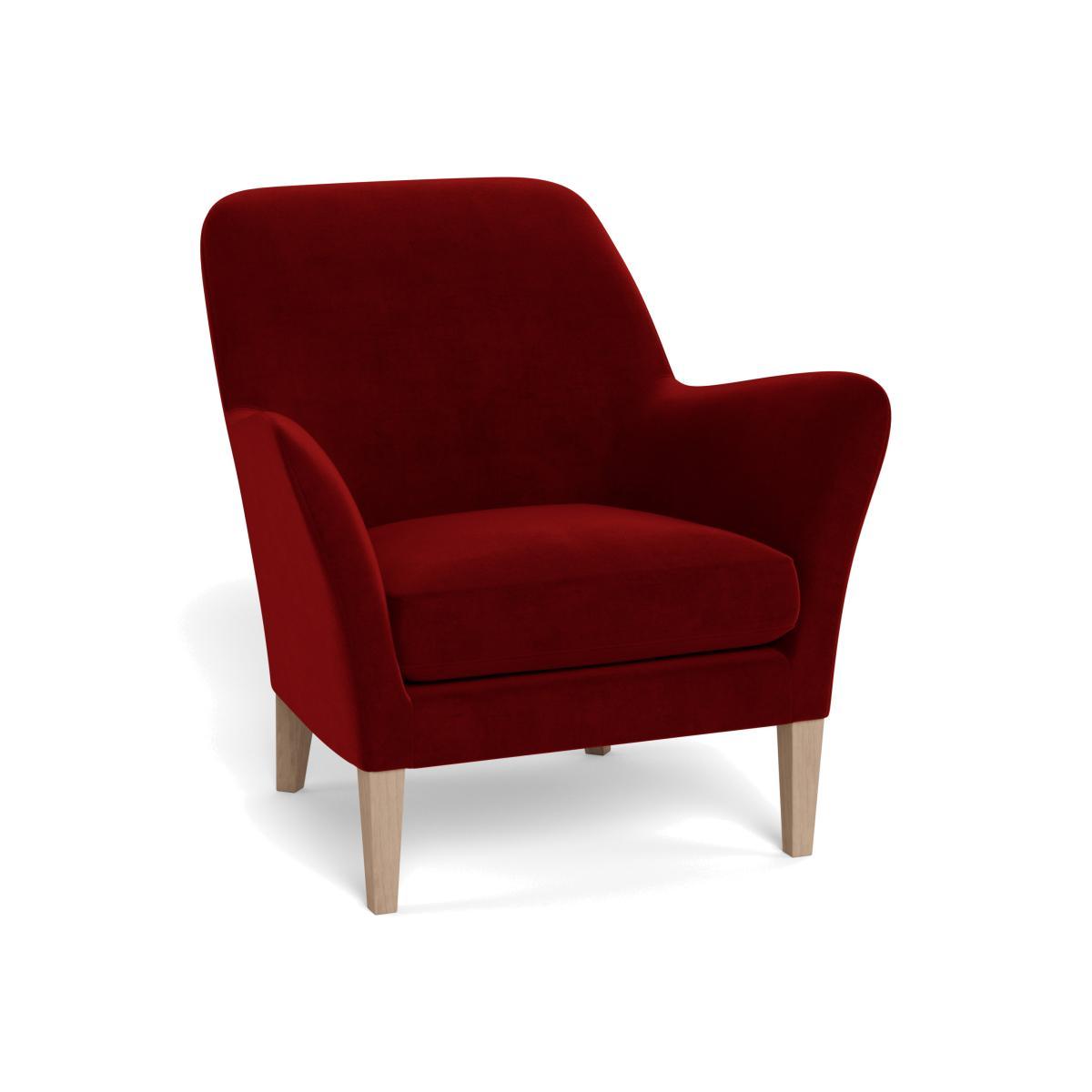 I’d call this the Wallis chair - its softly curved arms and sumptuous velvet make it a great focal piece in both contemporary and mid-century settings. The deep mulberry shade adds warmth without overwhelming a neutral scheme, while the slim legs give it a light, airy feel. For styling, tuck a contrasting linen or patterned cushion in one corner and pair with a teak or brass-framed side table to balance the richness of the velvet. It also works well beside a low bookshelf or in front of a statement wallpaper, and will stand up happily to everyday use in your living room or reading nook.