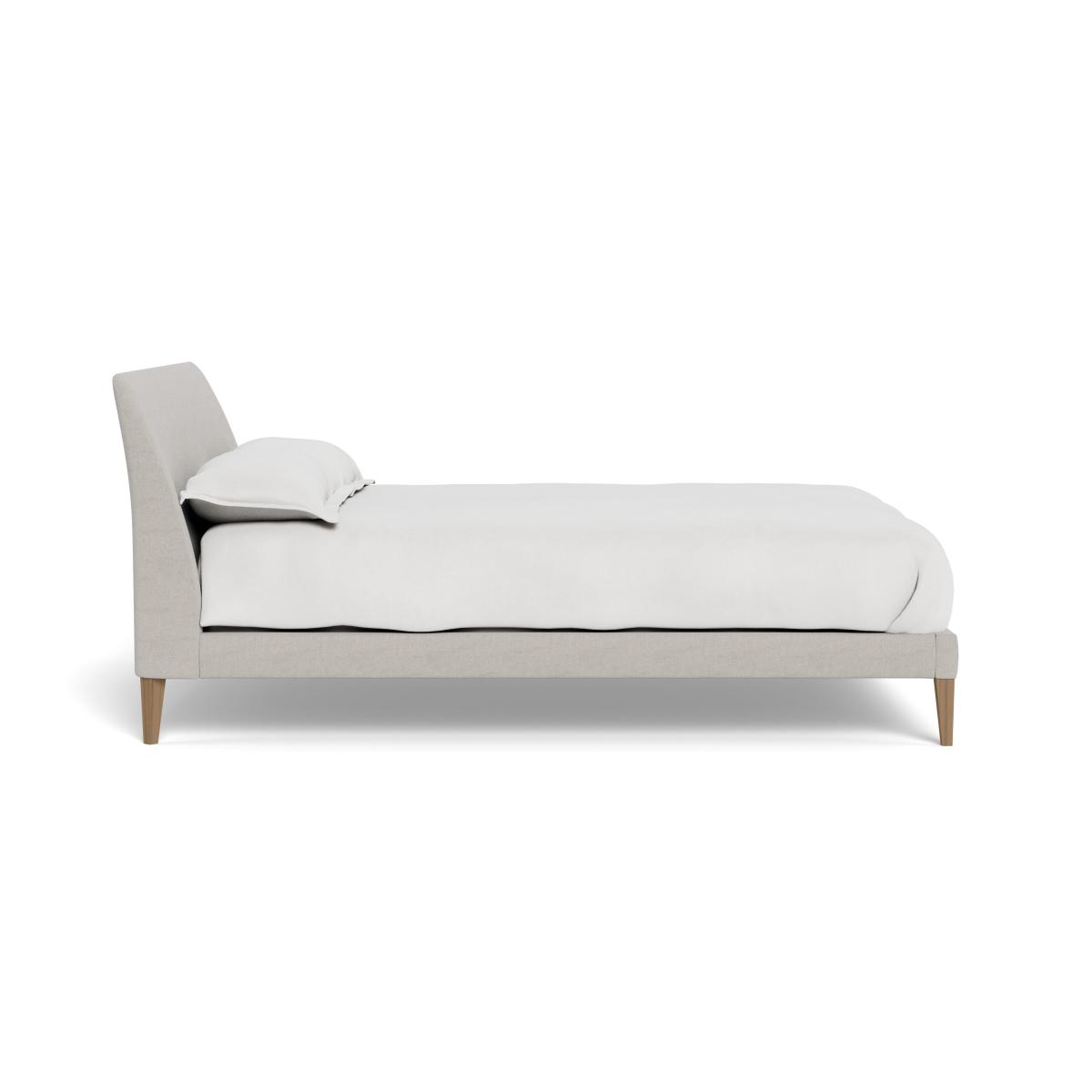 The Wallis bed marks the one year anniversary of our ongoing collaboration with British Designer, Russell Pinch. Following the success of the Wallis sofa and armchair, we commissioned Russel to design a bed using his trademark silhouette. The result was a compact yet generous bed that mixes soft curves and crisp lines. The headboard has a slight curve that forms a delicate edge and the oak feet (available in natural, stained or black finish) are positioned at the very edge of the solid timber with foam and fibre structure. Entirely crafted in Britain, the Wallis Bed is available in a number of fabrics.