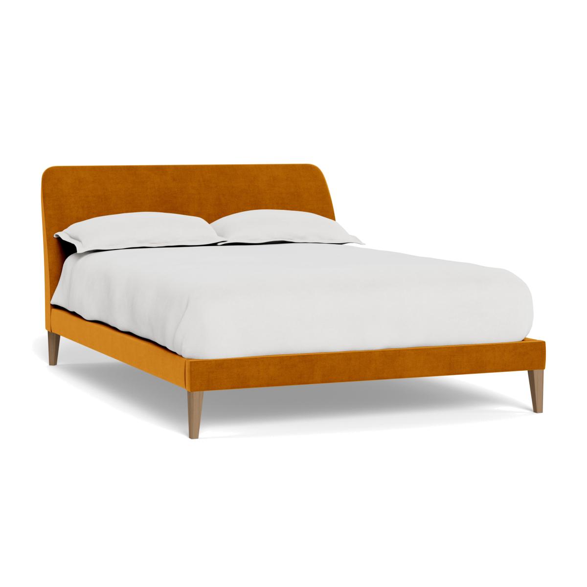 Heal's Wallis Bedstead Double Smart Luxe Velvet Cognac Walnut Feet