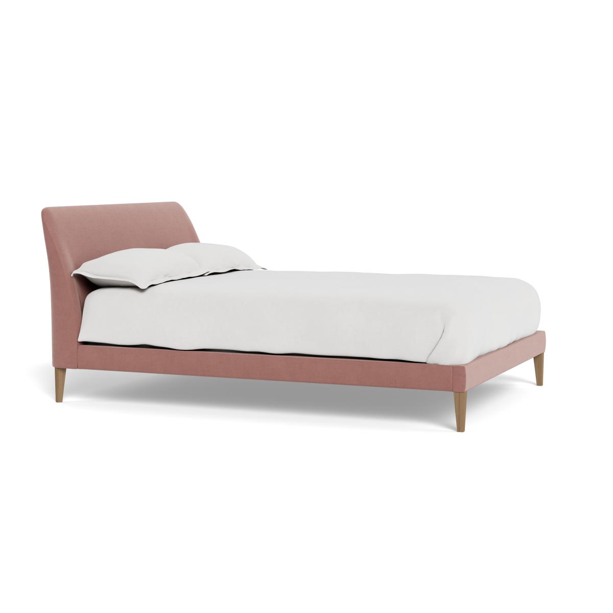Heal's Wallis Bedstead Double Smart Luxe Velvet Dusky Pink Stained Oak Feet