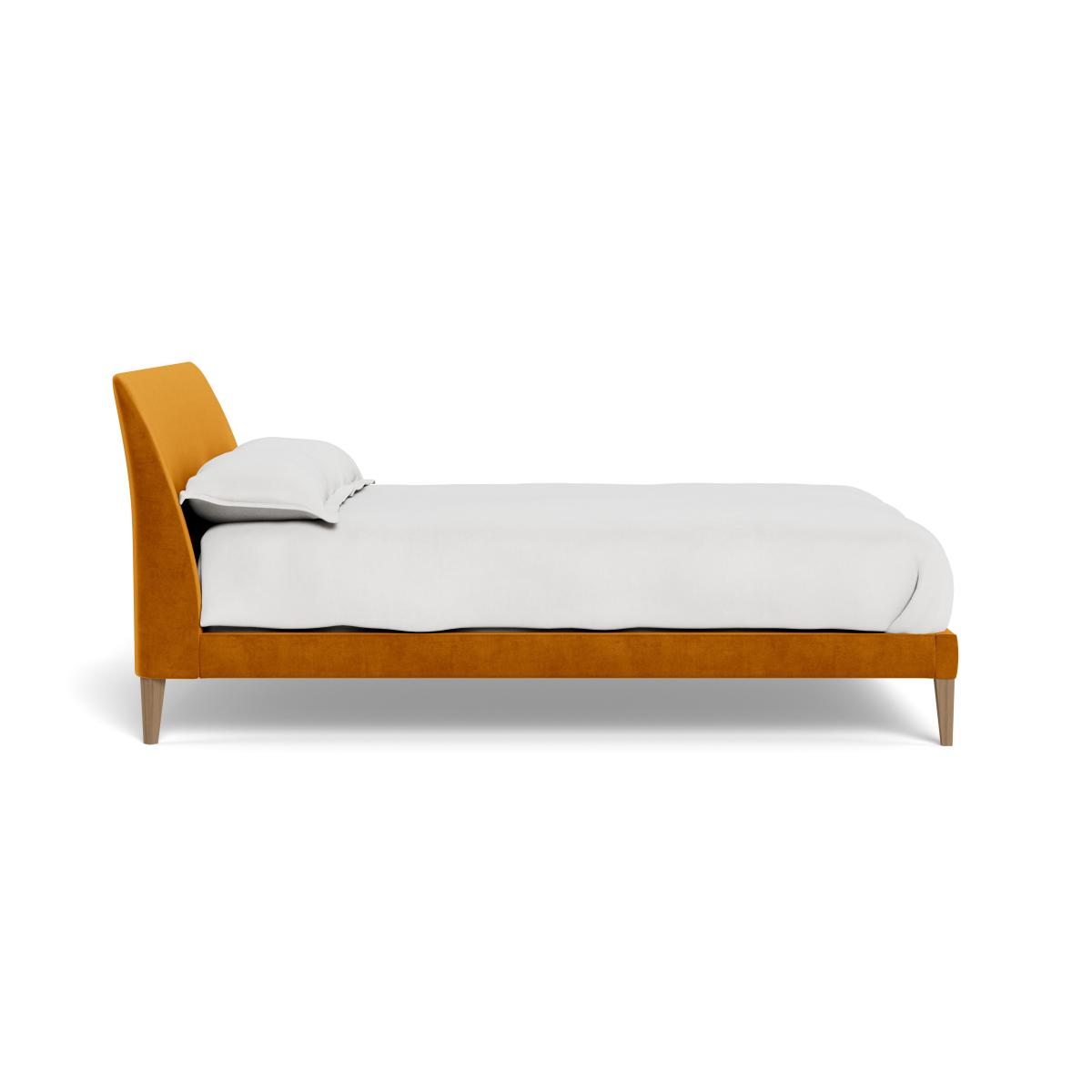 Heal's Wallis Bedstead King Smart Luxe Velvet Cognac Walnut Feet
