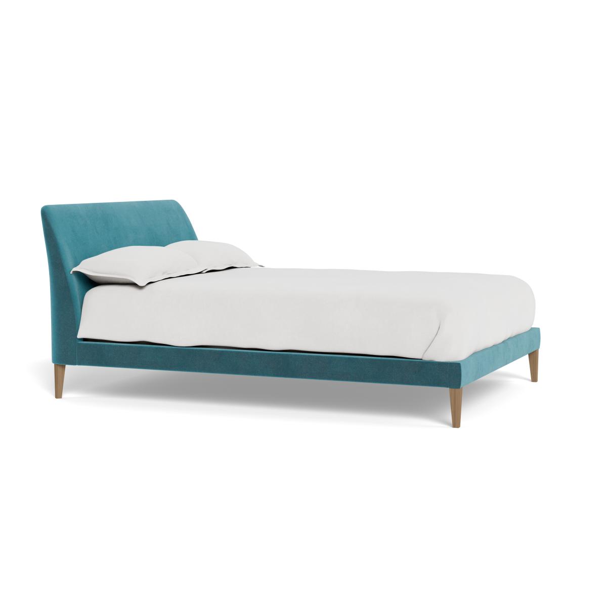 Heal's Wallis Double Bed Smart Luxe Velvet Airforce Blue Black Oak Feet