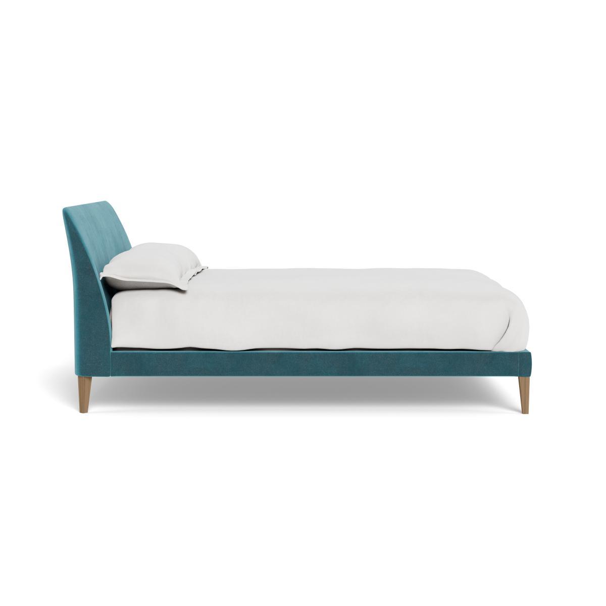 Heal's Wallis King Bed Smart Luxe Velvet Airforce Blue Stained Oak Feet - Heal's UK Bedroom Furniture