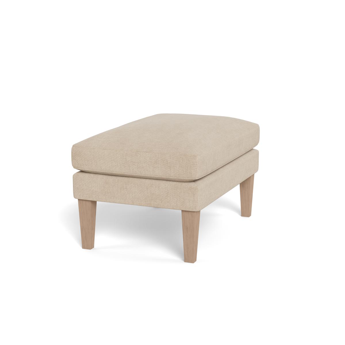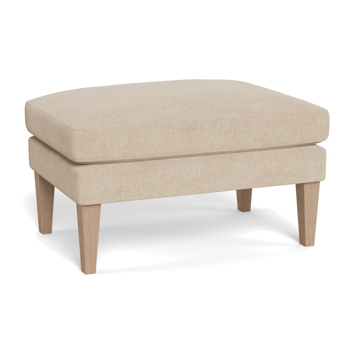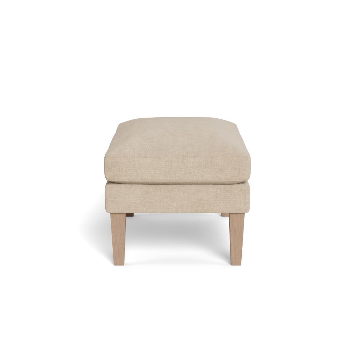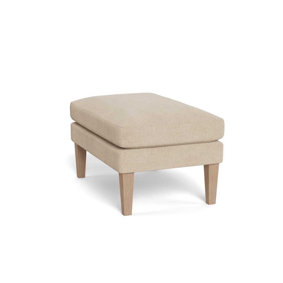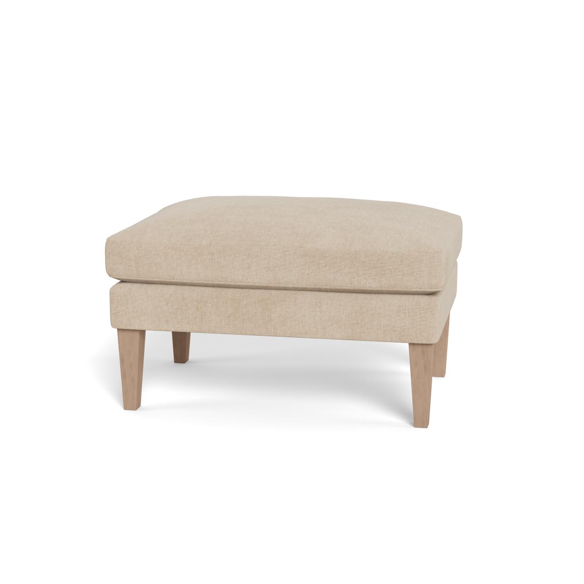 I love this ottoman for its clean, understated design and versatile neutral tone, which makes it a flexible addition to many interiors. The brushed cotton in oat tint offers a soft, tactile finish that adds warmth without overpowering the space. It works particularly well in contemporary, Scandinavian, or minimal schemes, but can also complement more traditional interiors when paired with rich textures and layered textiles. Practical styling tips include using it as both a footrest and extra seating, or draping a cosy throw over it to create an inviting corner. Its sturdy yet elegant wooden legs give it durability while maintaining a light, airy feel, making it an easy piece to adapt as your room style evolves.
