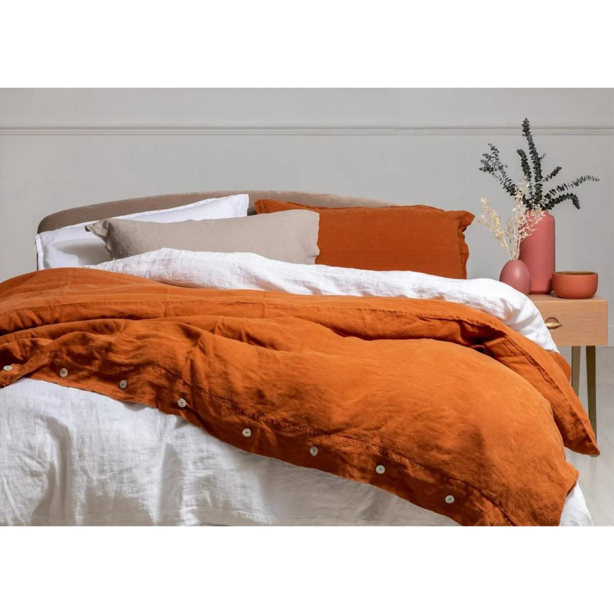 I love this linen bedding for its relaxed, natural feel, making it perfect for creating a cosy, inviting bedroom. The cinnamon tone offers warmth and pairs beautifully with neutral palettes, soft greys, and earthy shades, working well in both contemporary and rustic interiors. For styling, I recommend layering it with textured throws and a mix of pillows in complementary colours or patterns to add depth. It's also practical-linen gets softer with each wash and is great for year-round comfort due to its breathability. As a stylist, I’d suggest keeping the rest of the room minimal to highlight the rich colour and natural fabric, allowing it to be the focal point while maintaining a calming, harmonious look.