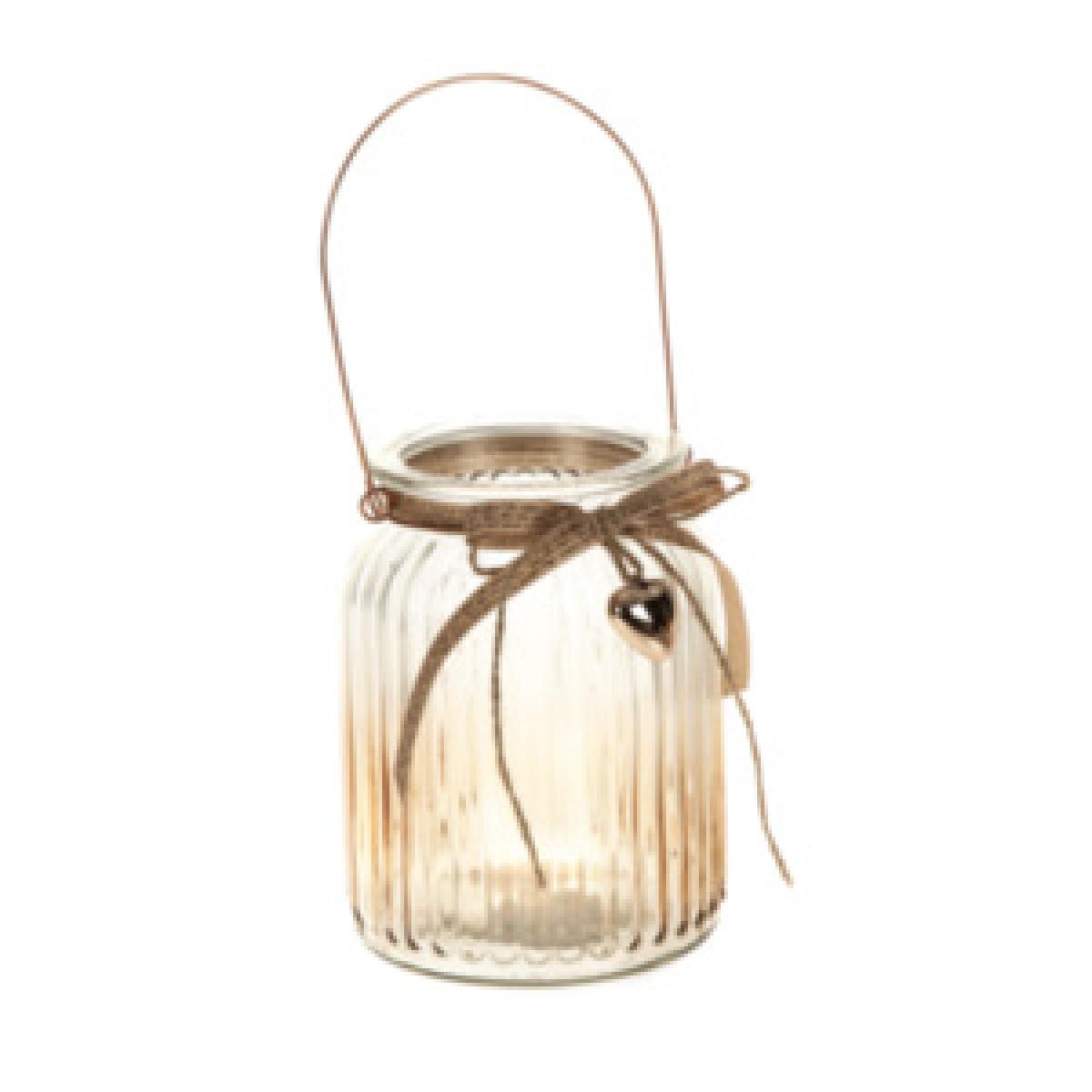 This Heart and Ribbon Tea Light Holder is a stunning way to incorporate a subtle glow of light into your home. The holder itself is completed with a beautiful matching ribbon and finished with a metallic heart adornment.