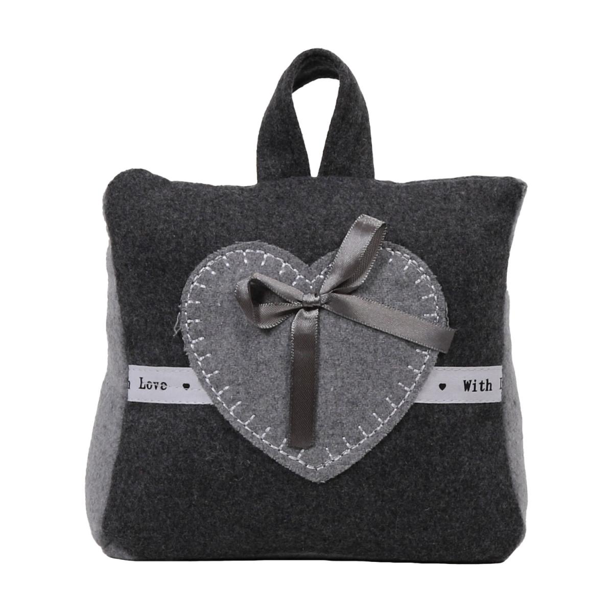 Keep your dog propped open or closed whatever the weather with this warm and attractive Grey Heart Fabric Door Stop. Crafted with a heart-shaped finished accented with a bow and ribbon detail, this is sure to help your space feel warm and homely. Easy to use in any room, it's a brilliant accessory for any home.