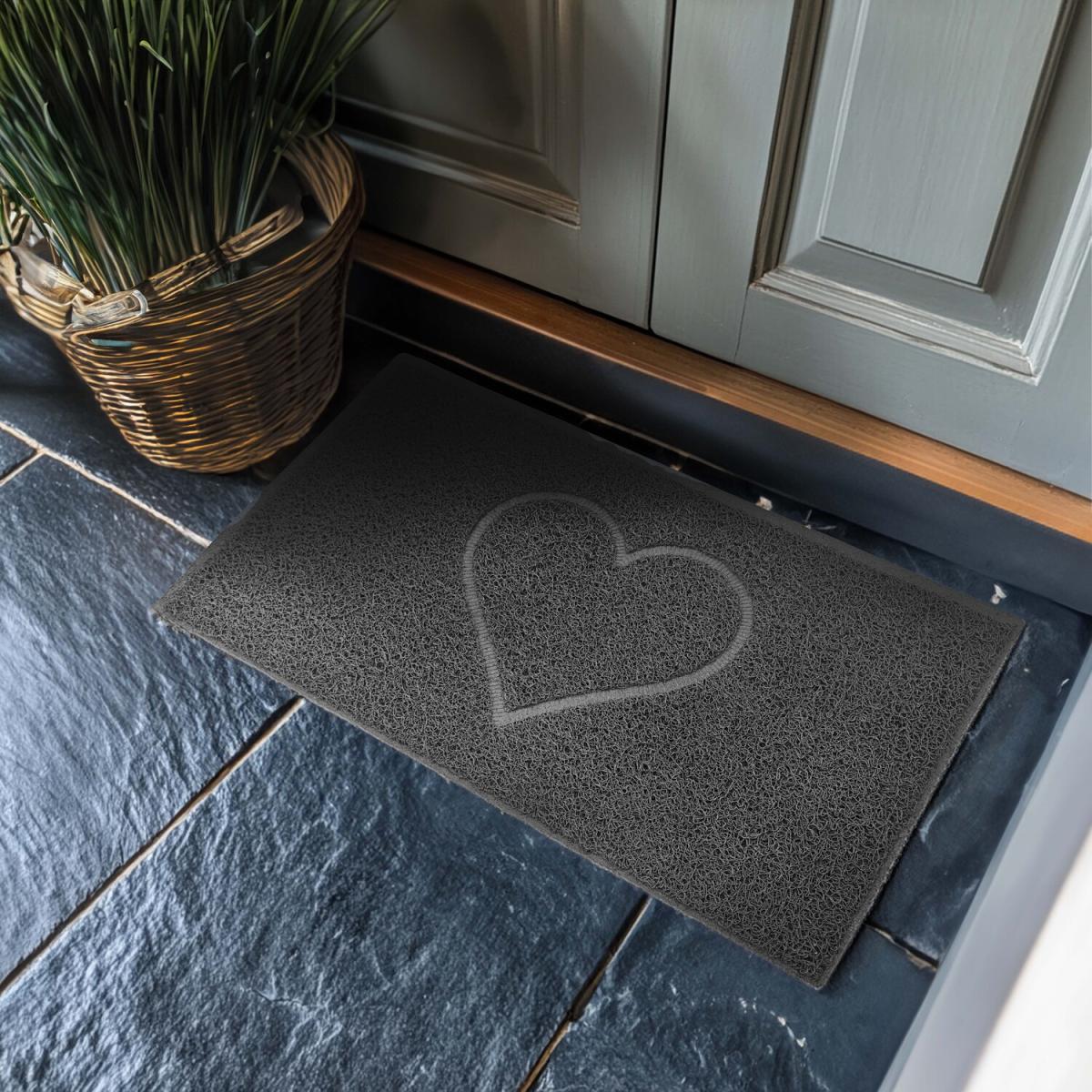 Heart Embossed PVC Spaghetti Coil Doormat - Dark Grey / 60cm x 40cm