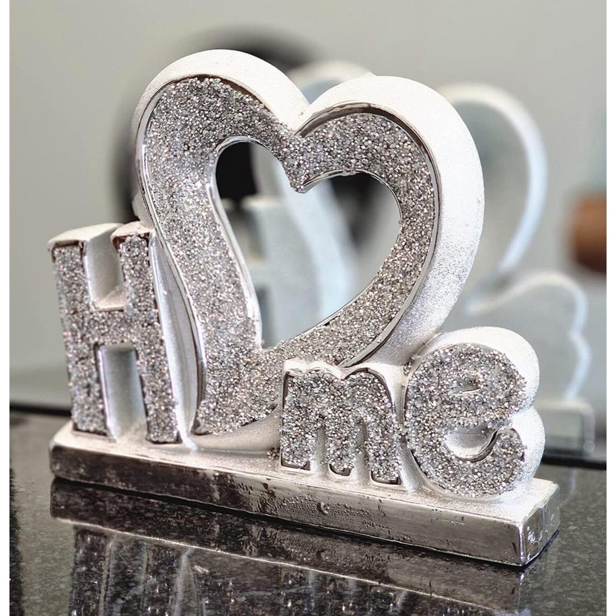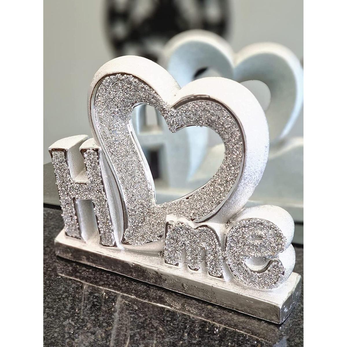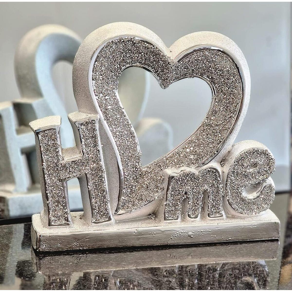 Heart Jewel Crushed Diamond Home Sign Letters - Silver