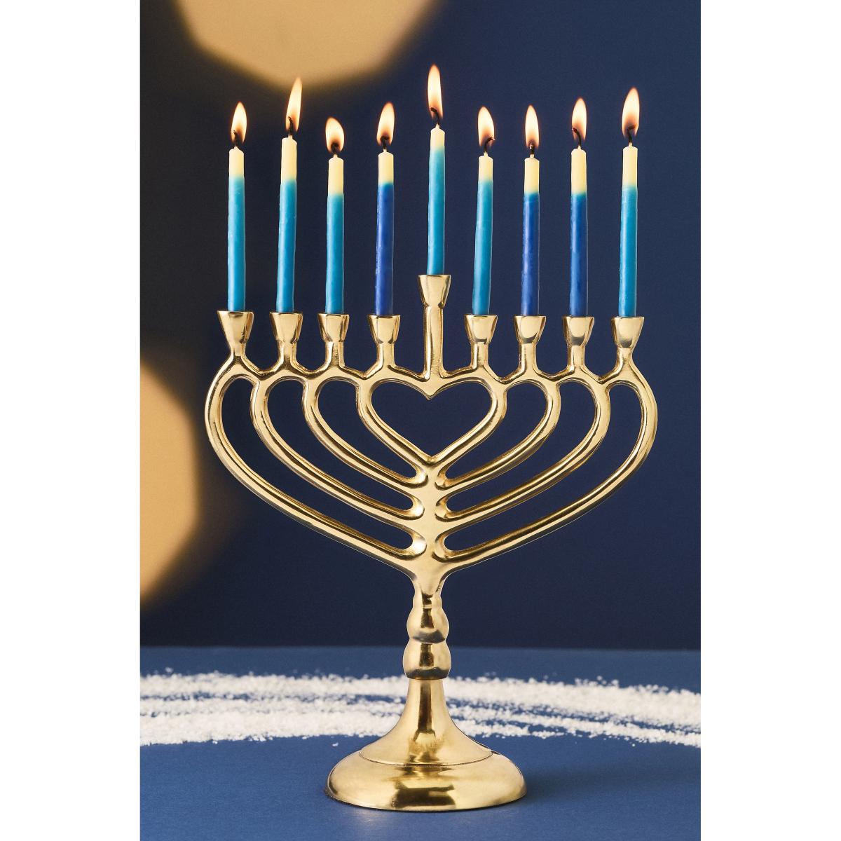 I love this gold heart menora for its striking yet elegant design, making it a versatile piece that can bring warmth and a touch of modern sophistication to a range of interiors. It works well in contemporary spaces, especially when paired with neutral or dark backgrounds, allowing its metallic shine to stand out. Practical styling tips include placing it on a mantlepiece, side table, or as part of a table centrepiece during festive seasons-pair it with simple candles to keep the look clean and uncluttered. For a more curated display, consider mixing with textured textiles or natural materials like wood or stone to create a balanced, inviting aesthetic.