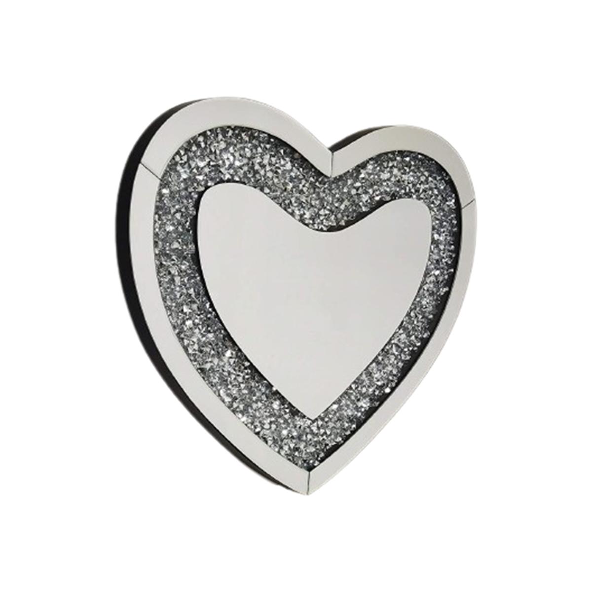 Heart Shape Crushed Diamond Crystal Wall Mirror - Silver