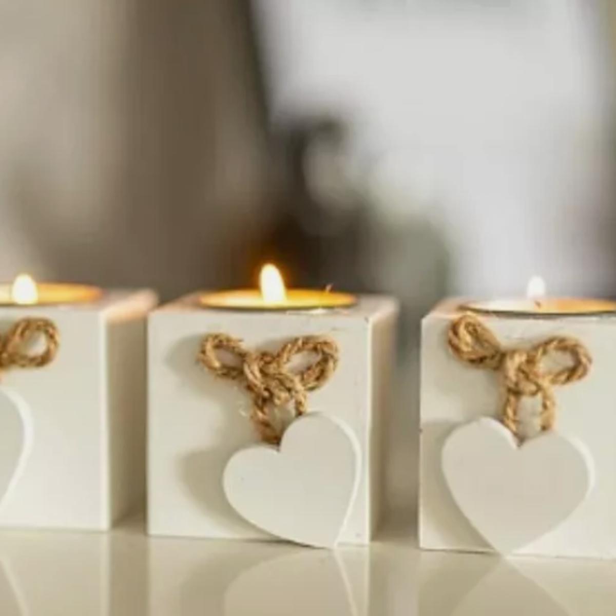 Decorate your home with these Rustic Wooden Candle Holders. 3 Small White tealight holders decorated with rope and a white wooden heart on each holder. Keep them together or space them out, these holders will look great wherever you place them. These crafted candle holders are specifically designed as a dining table centrepiece as a focal point, while also being used as a window decoration etc.