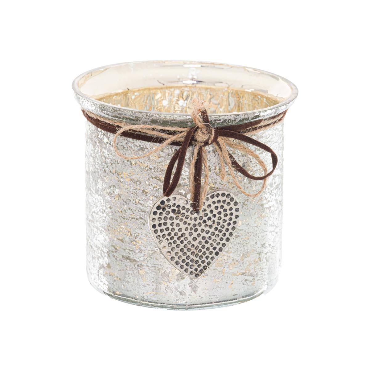 Ignite a warm, inviting atmosphere with our Mercury Hammered Heart Samll Candle Holder. This exquisite piece showcases a delicate heart motif meticulously crafted from tiny hammered dots, creating a mesmerizing play of light and shadow. The weathered mercury glass finish exudes vintage charm, while a rustic twine bow adds a touch of countryside elegance. Perfect for retail displays, this versatile candle holder appeals to a wide range of customers seeking both romance and rustic chic. Pair with fresh or dried lavender sprigs for a Proven-inspired look, or surround with pinecones and evergreen branches for a cozy winter aesthetic. The neutral tones complement various interior styles, from shabby chic to modern farmhouse. Ideal for gift shops, home decor boutiques, and wedding-focused retailers, this candle holder promises to be a bestseller. Its timeless design and quality craftsmanship ensure year-round appeal, making it a must-have addition to your product lineup.