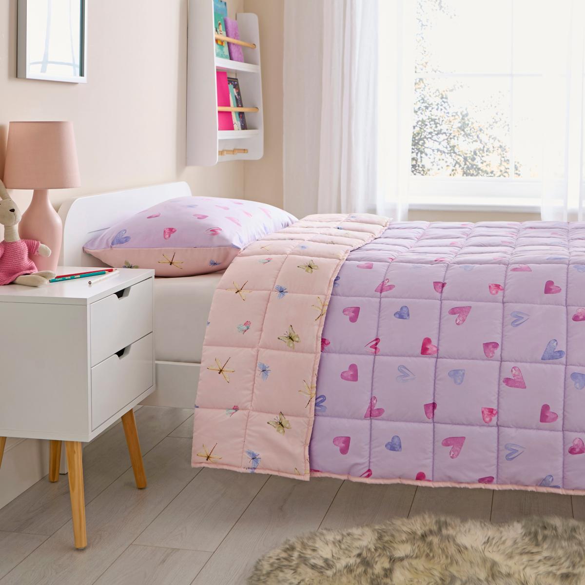Hearts 4 Tog Single Reversible Coverless Summer Quilt & pillowcase Pink