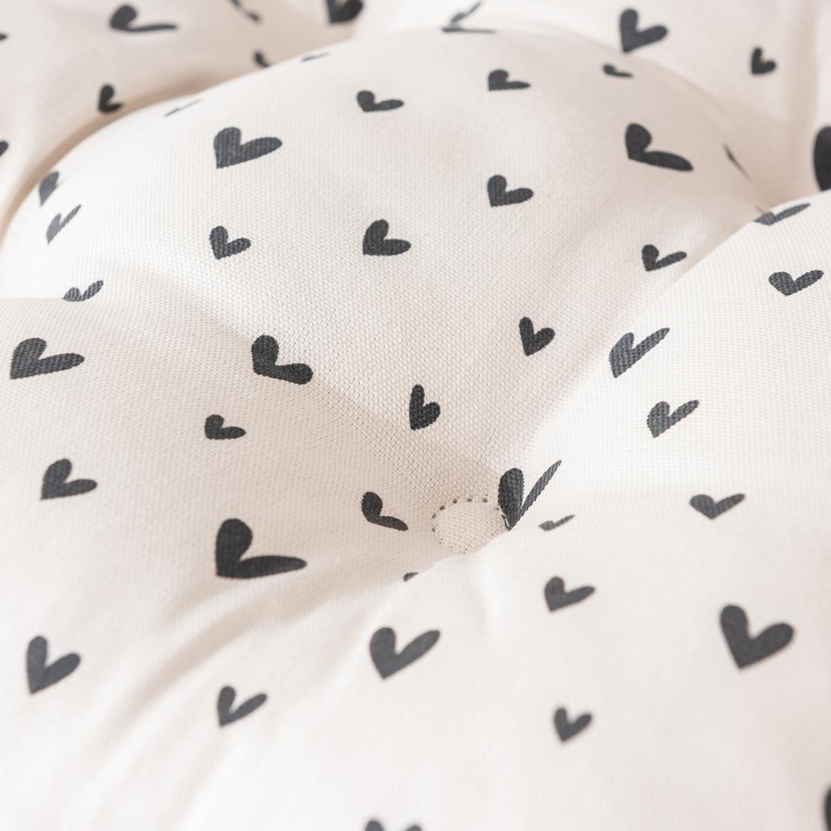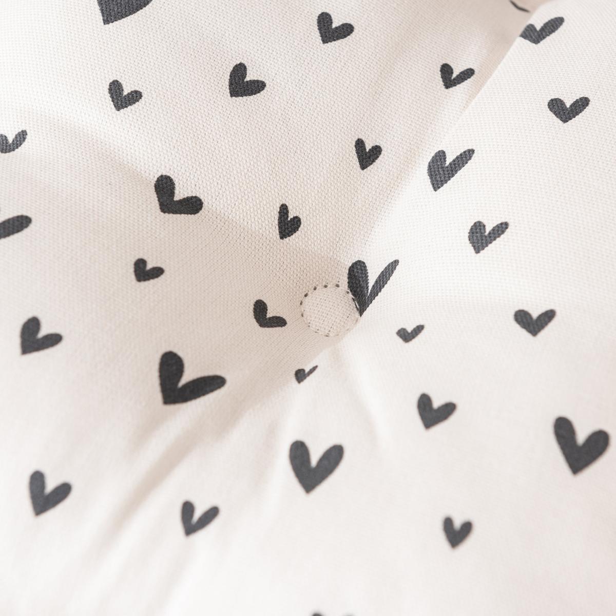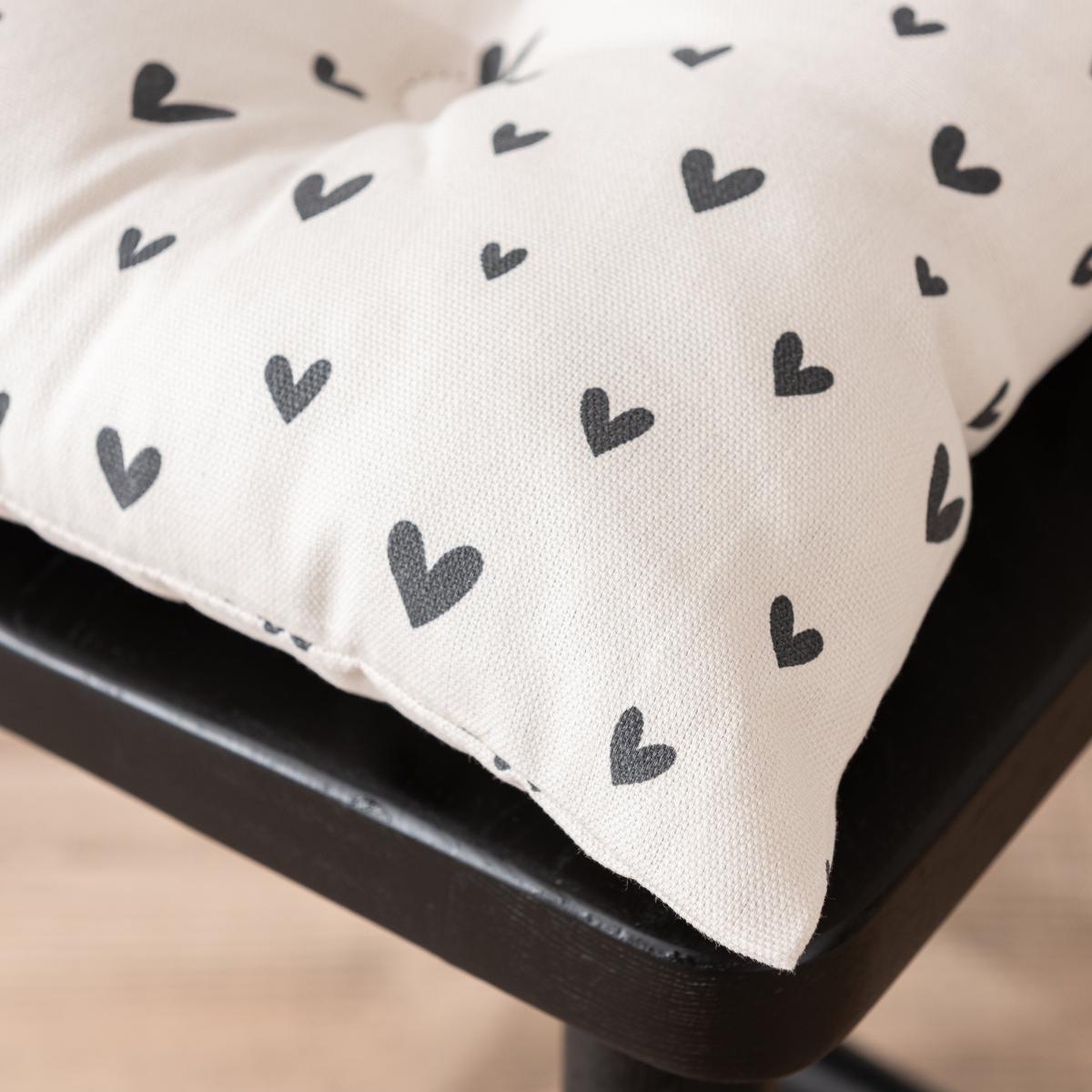 Add a loving touch to your dining space! This seat pad features a contemporary heart print complimenting any kitchen and dining room beautifully. Made from 100% cotton and filled with recycled polyester fibre for comfort, the seat pad has two practical ties to fasten to your chair. Coordinate with other matching items to complete the look.