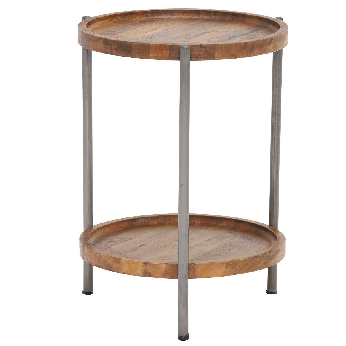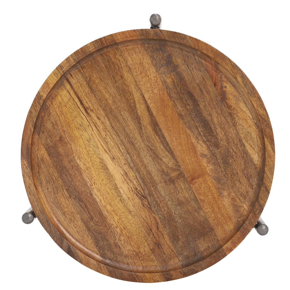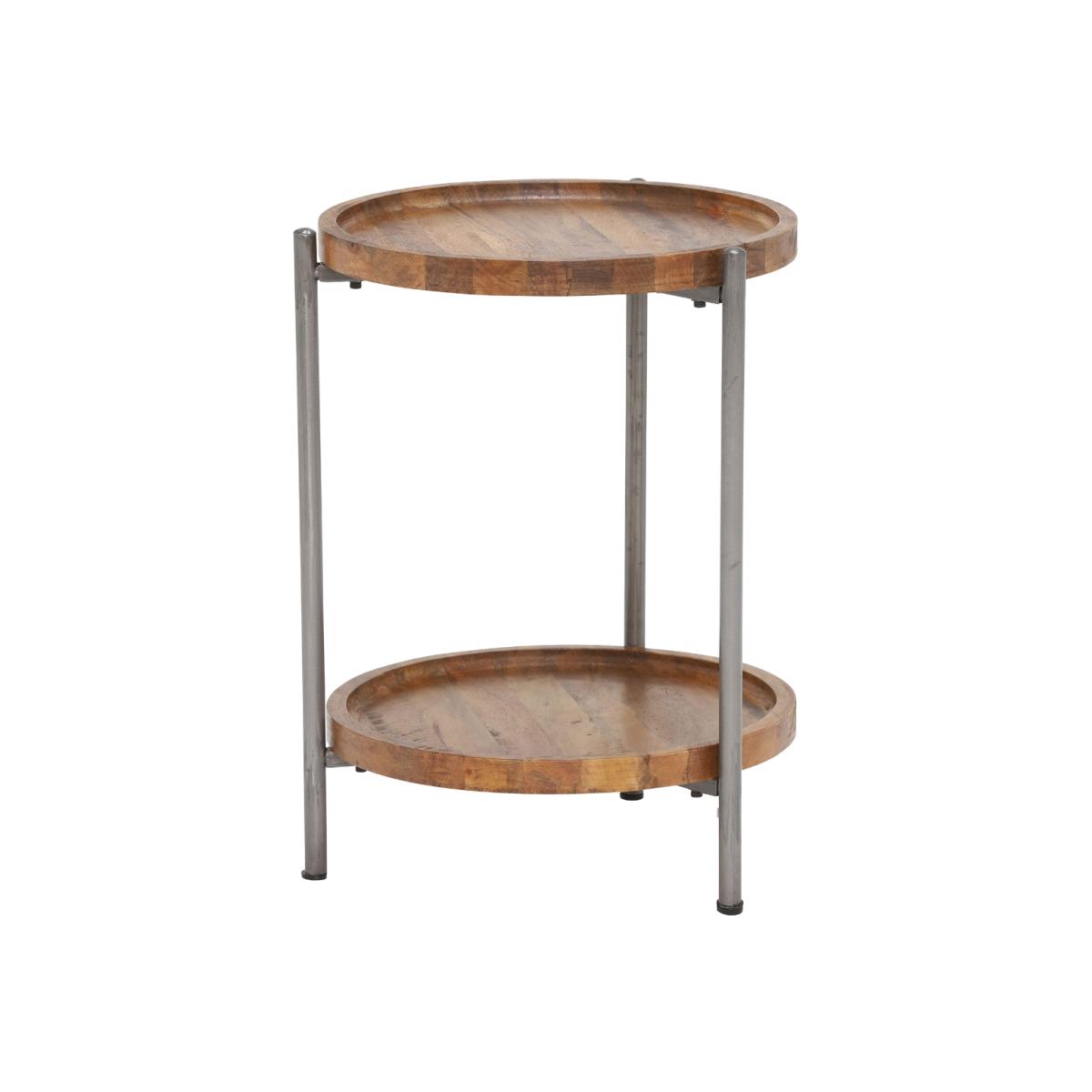 Design. The Heartwood Round Side Table. Offers a. Modest design, crafted from sustainably sourced mango wood. To reveal dark earthy tone. S. With two shelves, Heartwood will accommodate your cup of tea and display. An accessory or two simultaneously. Perfect for natural settings. Or to add contrast. In. Industrial décor, this side table. Is a. Beautiful addition to any living room.