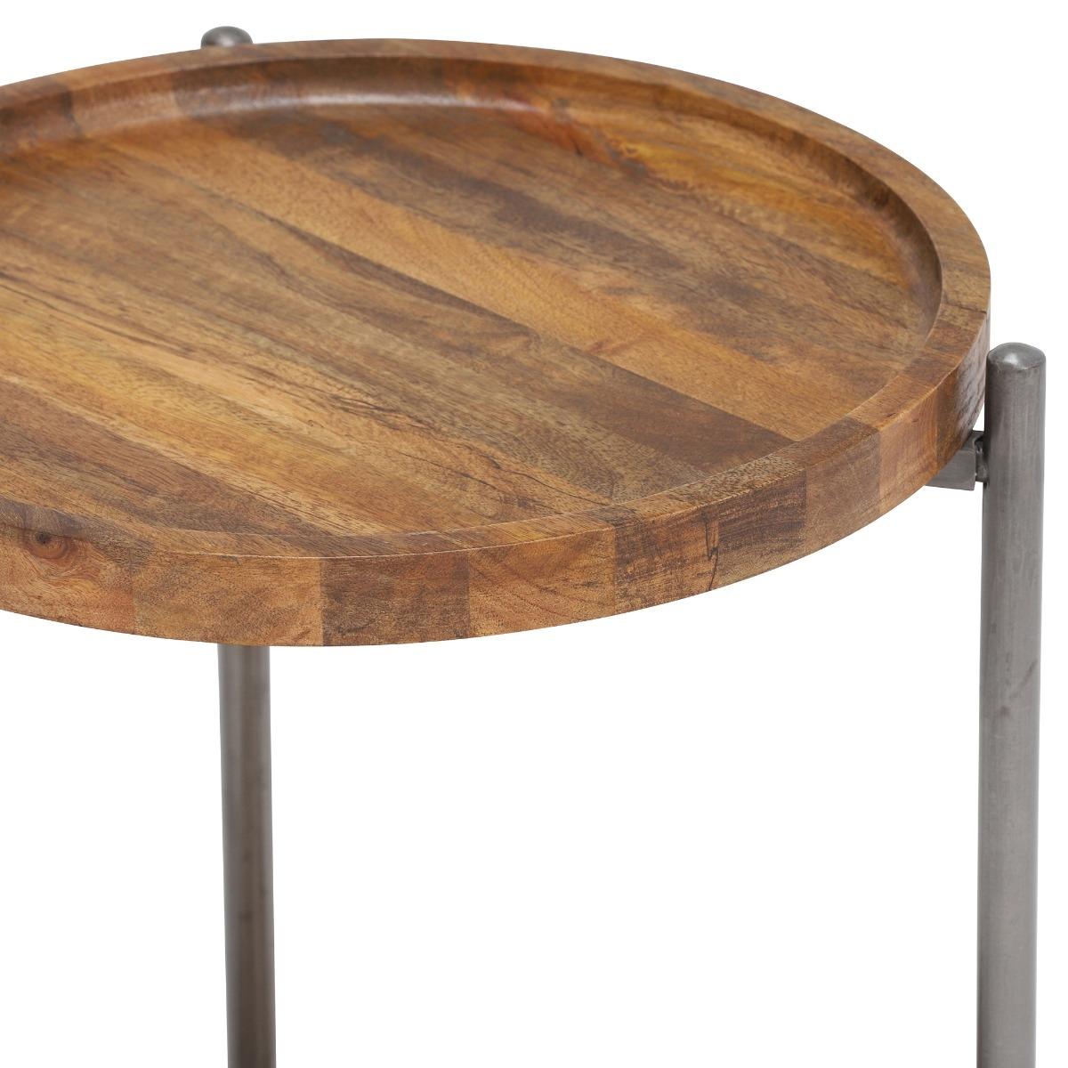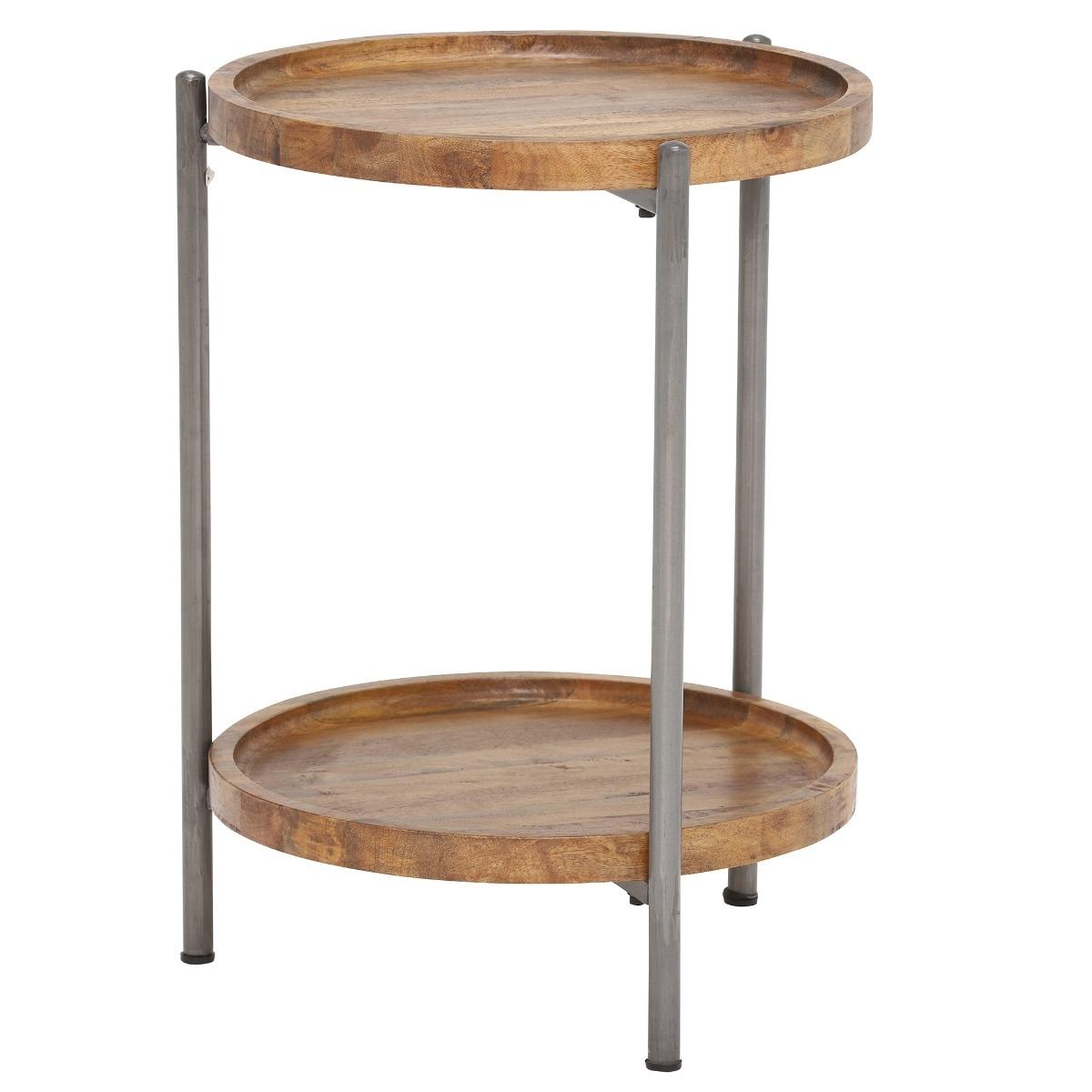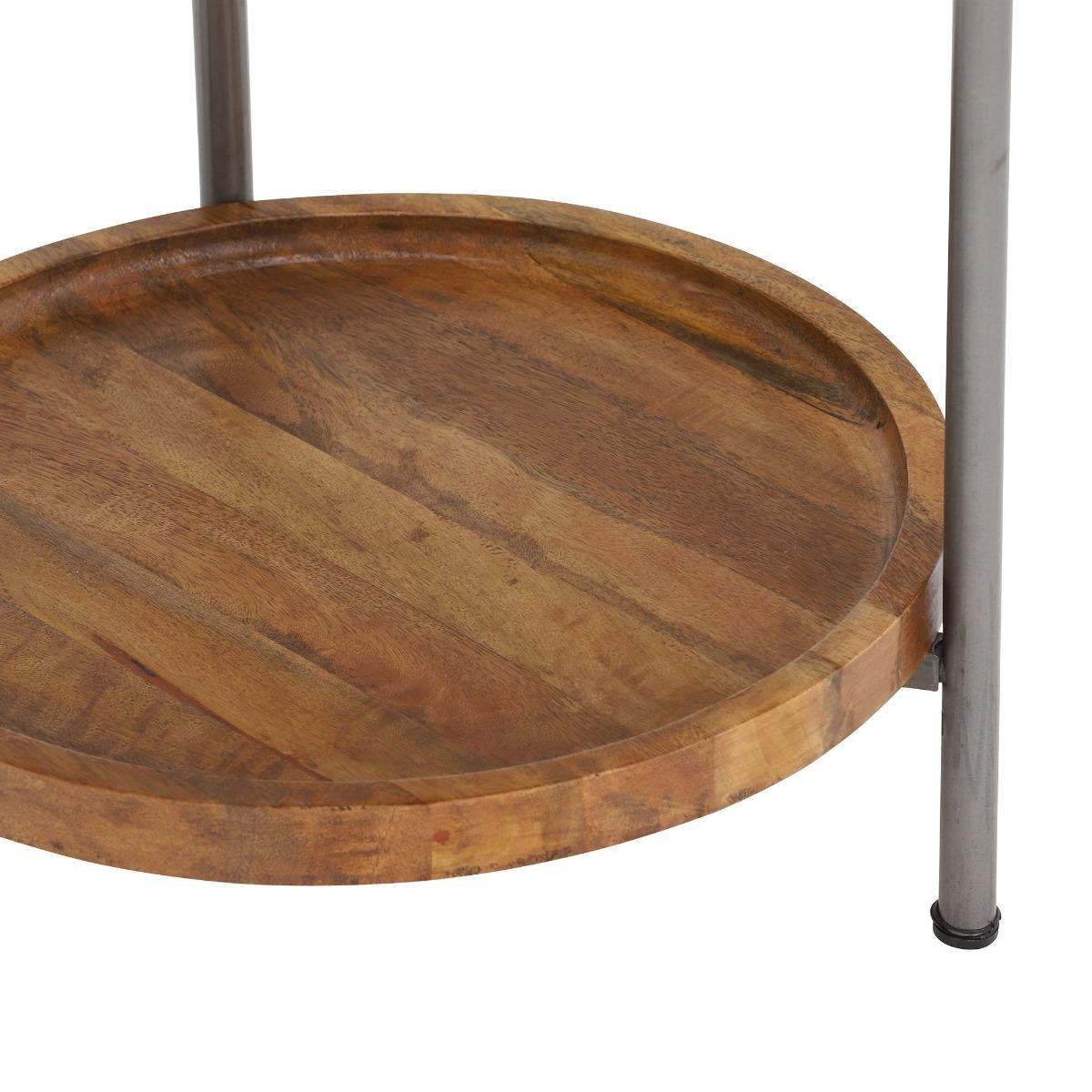 Design. The Heartwood Round Side Table. Offers a. Modest design, crafted from sustainably sourced mango wood. To reveal dark earthy tone. S. With two shelves, Heartwood will accommodate your cup of tea and display. An accessory or two simultaneously. Perfect for natural settings. Or to add contrast. In. Industrial décor, this side table. Is a. Beautiful addition to any living room.