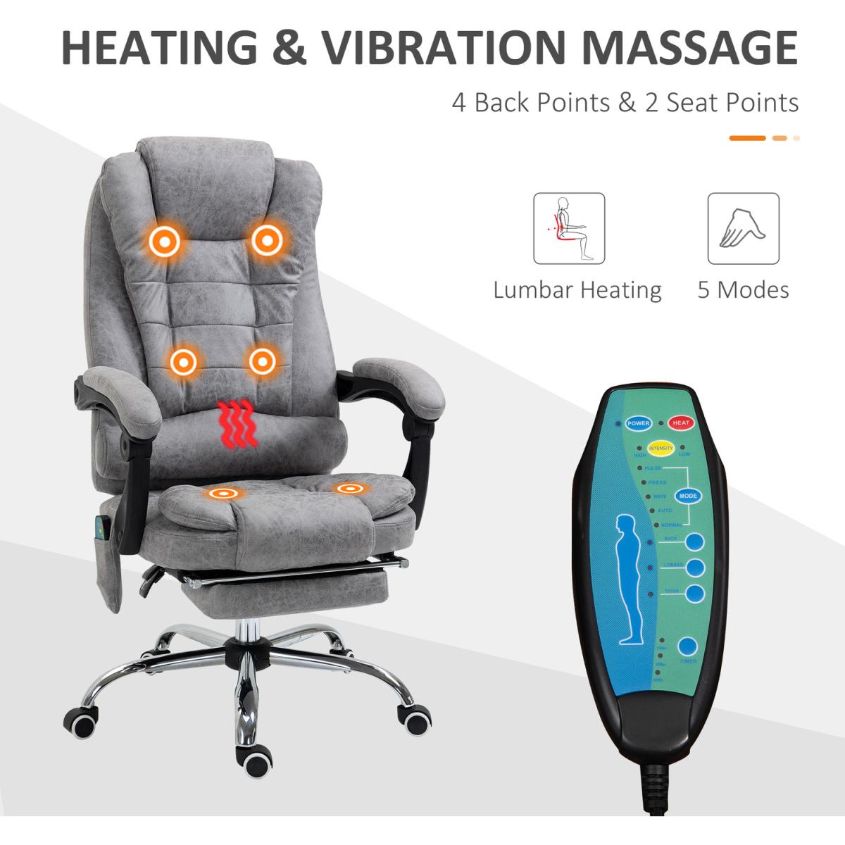 Heated Massage Office Chair with 6 Vibration Points - Grey