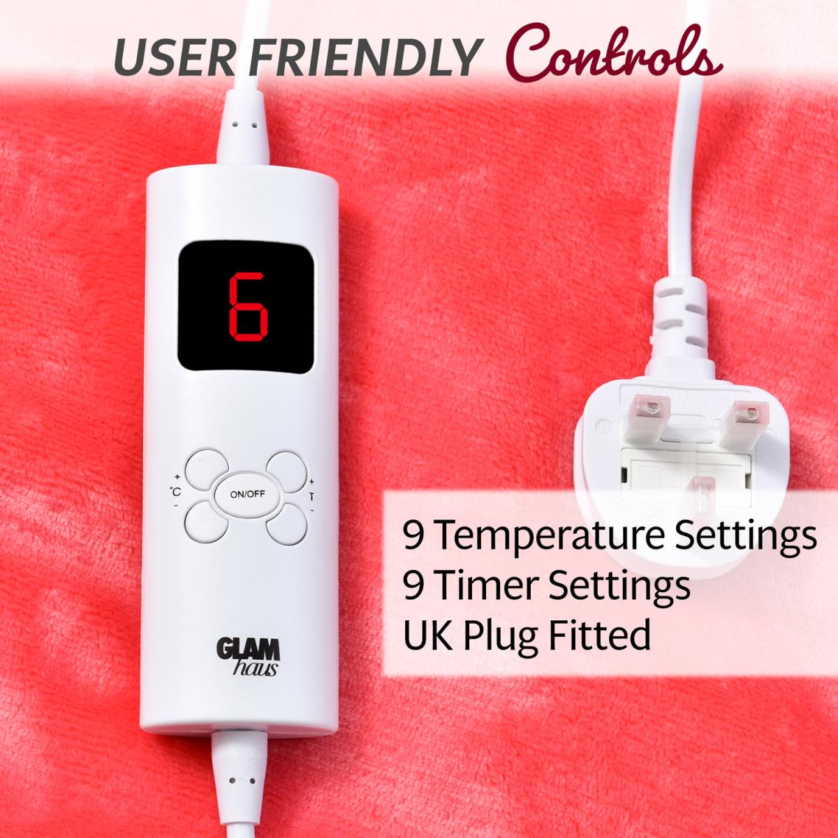 Use it on your bed as an over a blanket or snuggle up on the sofa and wrap yourself with the luxury fleece on one side or choose the velvety soft fabric on the other. The Glamhaus throw allows you to stay in total control as it offers you 6 different heat settings to choose from and 9-hour timer settings. The controller is easily detachable so the luxury throw can be machine washed. With its advanced built-in overheat safety protection system that will be enabled from the first time you switch the product on.