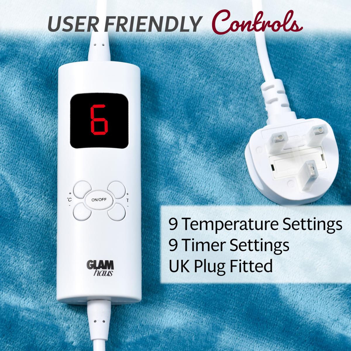 Use it on your bed as an over a blanket or snuggle up on the sofa and wrap yourself with the luxury fleece on one side or choose the velvety soft fabric on the other. The Glamhaus throw allows you to stay in total control as it offers you 6 different heat settings to choose from and 9-hour timer settings. The controller is easily detachable so the luxury throw can be machine washed. With its advanced built-in overheat safety protection system that will be enabled from the first time you switch the product on.