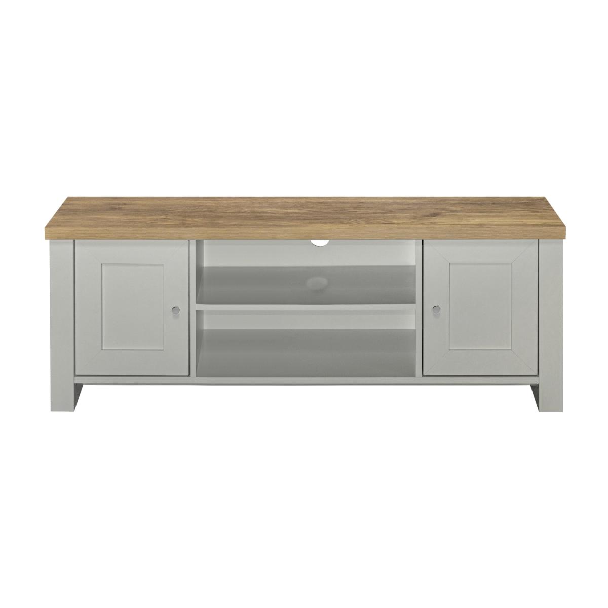 Enjoy the pure charm of the Heath collection. Inspired by a traditional farmhouse look, these pieces combine oak and colour for a pleasing effect, suiting a modern flat equally as well as a cosy cottage. This versatile unit supports a 58” TV (max) and features an open shelf for consoles plus two spacious cupboards for DVDs and games. High-quality craftsmanship Durable laminate with satin silver cup handles. A stunning oak-effect top Choose from white & oak, grey & oak or navy blue & oak. Easy self-assembly