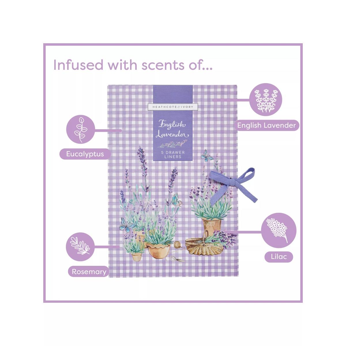 Bring calming fragrance to drawers and cupboards with this set of five decorative drawer liners. Infused with scents of English lavender with hints of rosemary, eucalyptus and lilac, a pretty, relaxing scent for your linen cupboard. Designed to line and fragrance drawers and cupboards, our lavender drawer liners makes a perfect gift for the home lover. Featuring a hand painted design with lavender filled terracotta pots and baskets resting on an English gingham check. With illustrated reusable folder perfect for storing photos and letters. Cruelty free and vegan friendly.