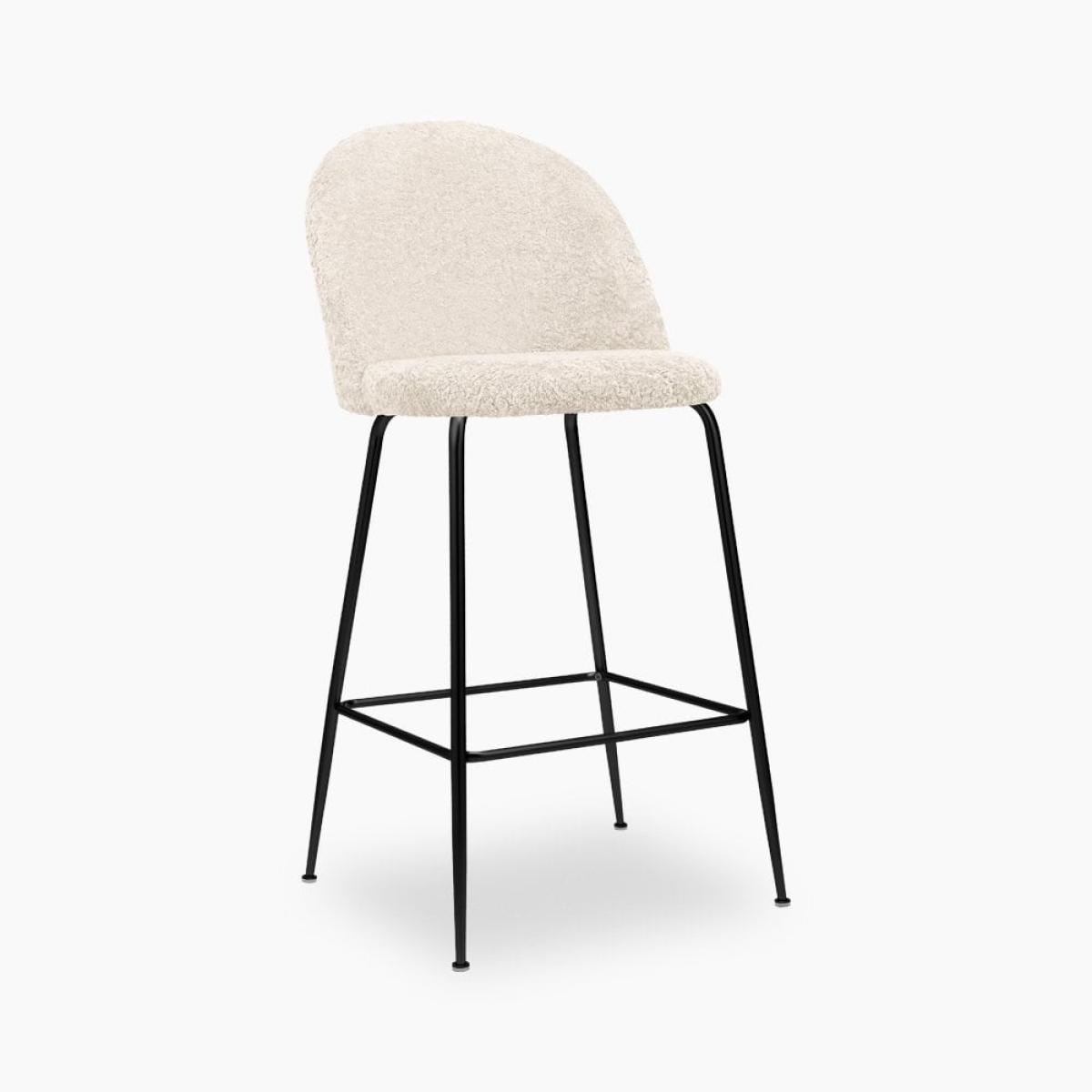 Heather Bar Stool, Ivory White Boucle Leg Colour: Black