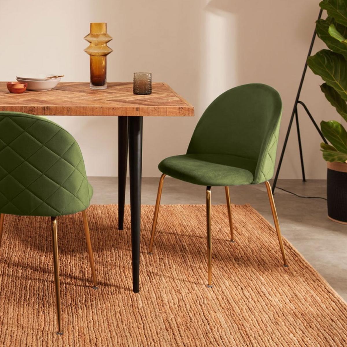 I love this green velvet dining chair for adding a pop of colour and texture to a range of interiors. Its moss green upholstery works particularly well in both modern and vintage-inspired schemes, and pairs effortlessly with neutral tones or rich jewel hues. The black legs give it a contemporary edge, making it versatile enough for a minimalist city apartment or a cosy country cottage. When styling, consider combining it with a wooden or marble dining table for contrast, and perhaps adding a soft throw or cushion to enhance comfort and visual interest. It’s practical too - the velvet finish is both stylish and durable, making it suitable for regular use in family kitchens or dining rooms.