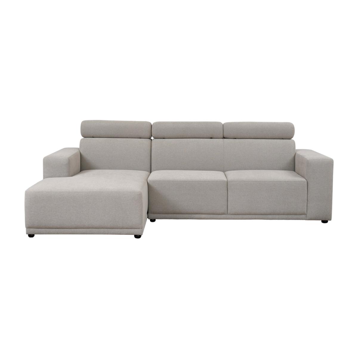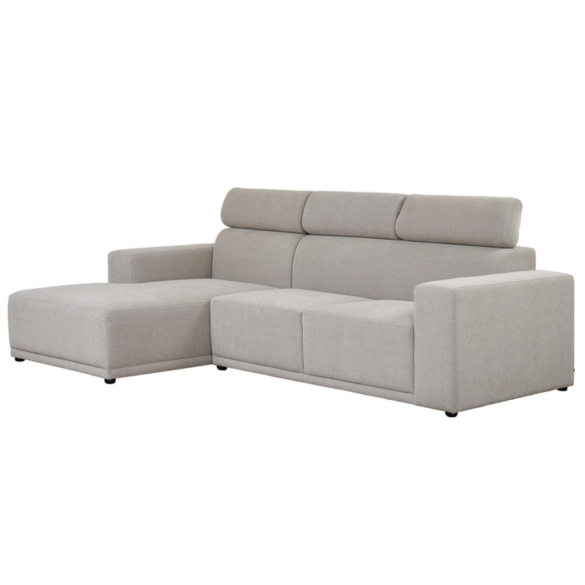 A spacious contemporary corner sofa featuring discreet adjustable headrests. Comfortable foam and fibre-padded seats and backrest. Upholstered in a soft, water-repellent fabric. To remove spills, gently dab the area with a paper towel; avoid rubbing as this may drive the liquid into the fabric. Supplied in two parts (which simply connect) for ease of transport and installation. Free returns on sofas if you change your mind within 7 days. Simply notify us, put the sofa back in the box, and we will collect it and send you a full refund. (This offer excludes Scottish Highlands and Islands & any Ireland addresses).