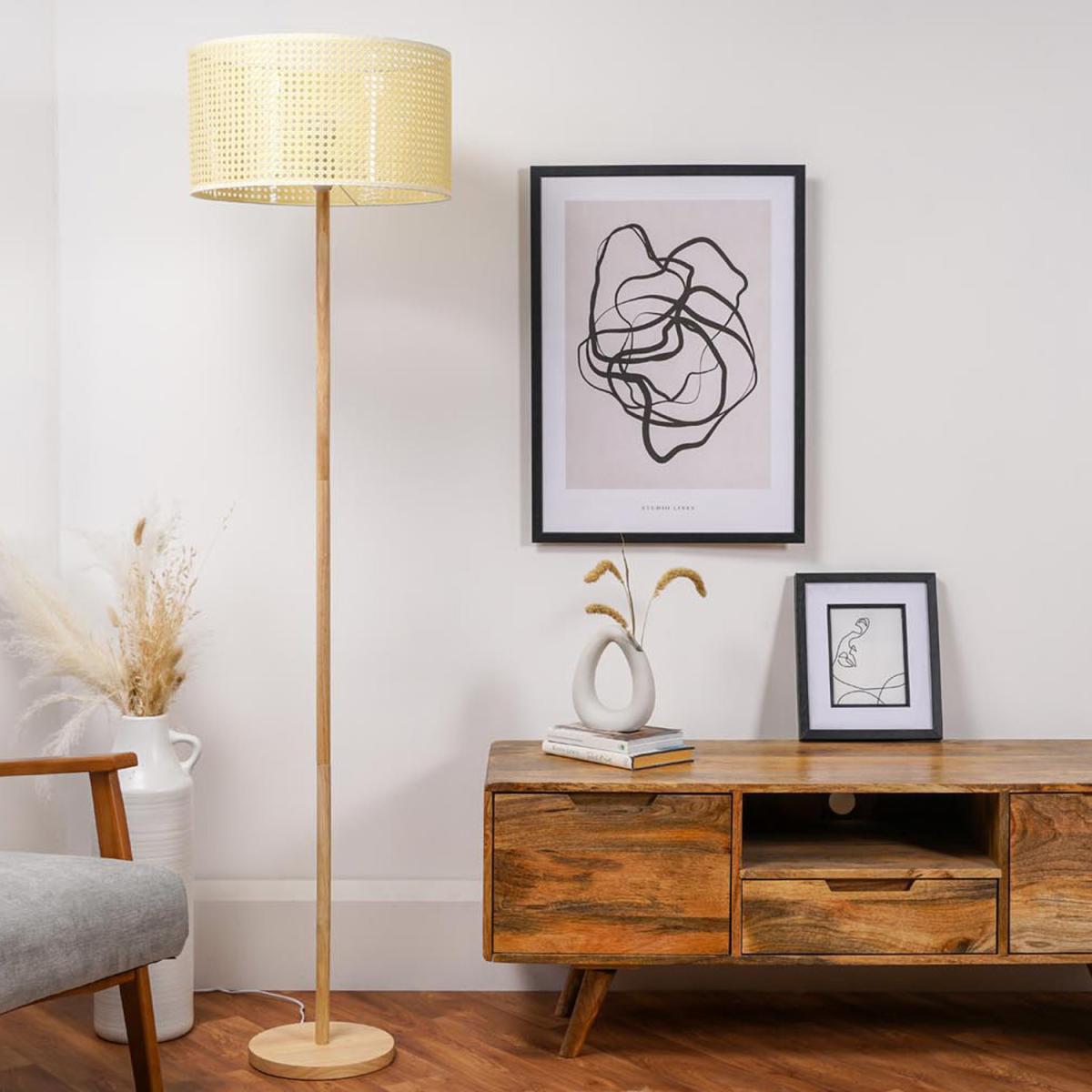 Add some chic, cosy Scandi-style to your home with this Heather Light Wood Floor Lamp! The contemporary design and wicker effect shade create a warm atmosphere perfect for unwinding in any room. With its bright glow illuminating dark corners of the space, it's sure to be an inviting addition that brings style and comfort into your living area.