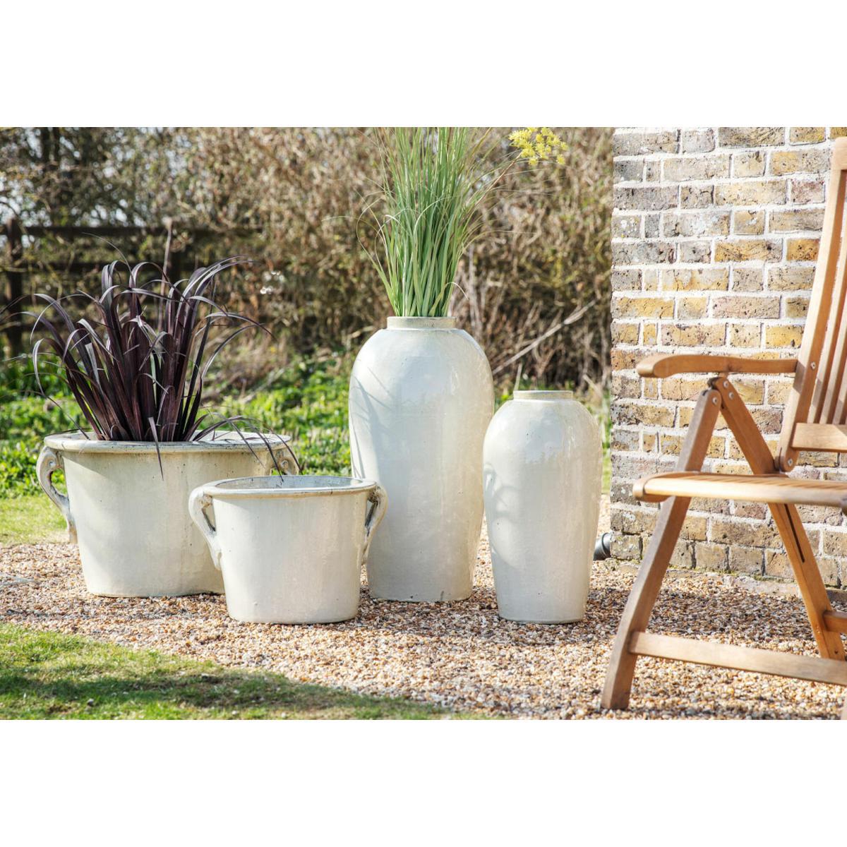 Inject dynamic texture and colour into your space with the Heather Planter. Crafted out of sturdy fired and glazed Stoneware, this vase features a solid base and a tall and wide neck featuring a unique Oatmeal finish. Perfect to house your favourite floral display, or equally beautiful to look at on its own.