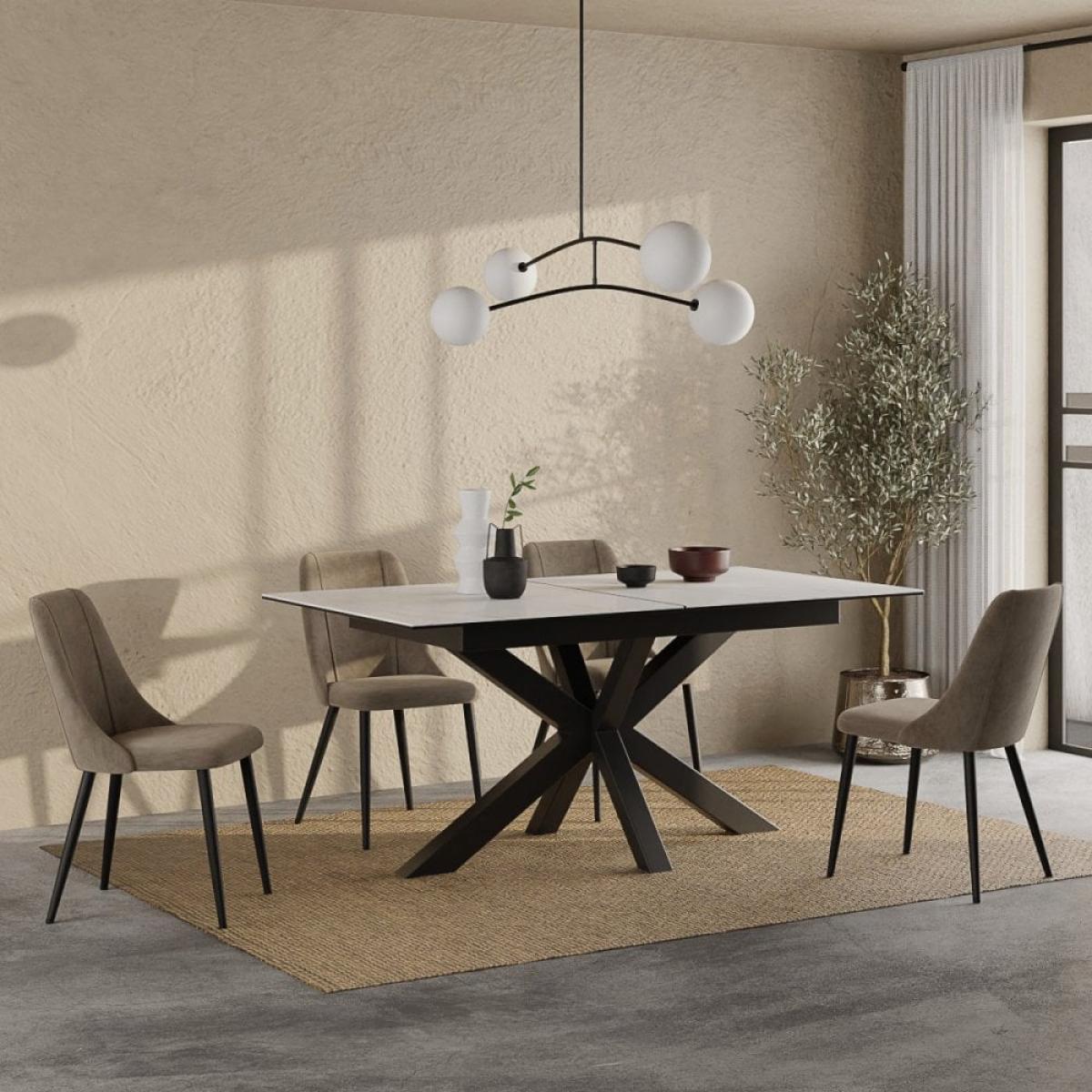 Comfortably sitting 6-8 people with easily extendable function, the blend of raw materials mixes contemporary industrial design with everyday dining for a modern dining table built to last. The Heaven Dining Table in White features sculptural starburst metal legs in black that offer stability and maximise legroom whilst the matte white surface is made from smooth and durable ceramic; low maintenance in a contemporary modern design. View The Heaven Range