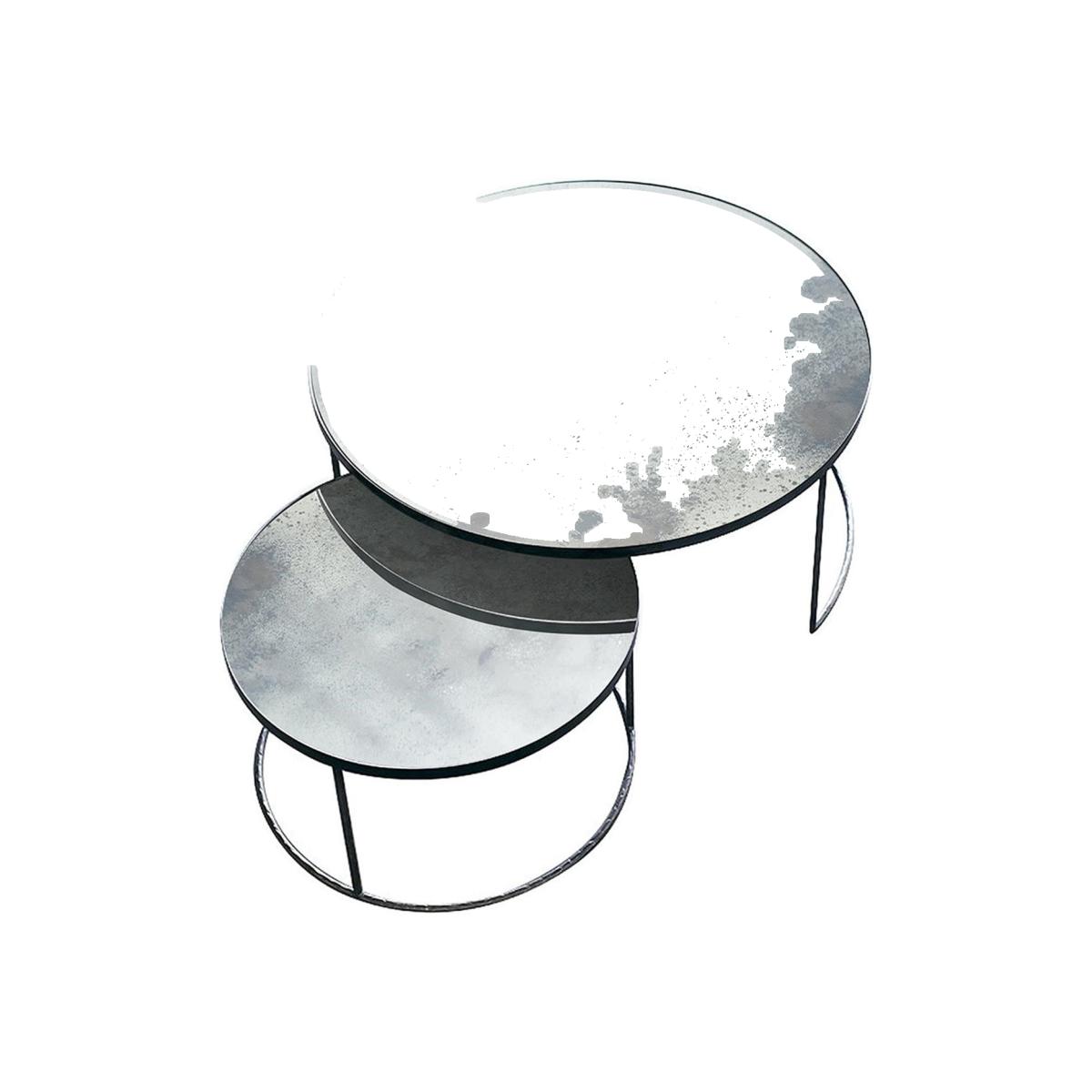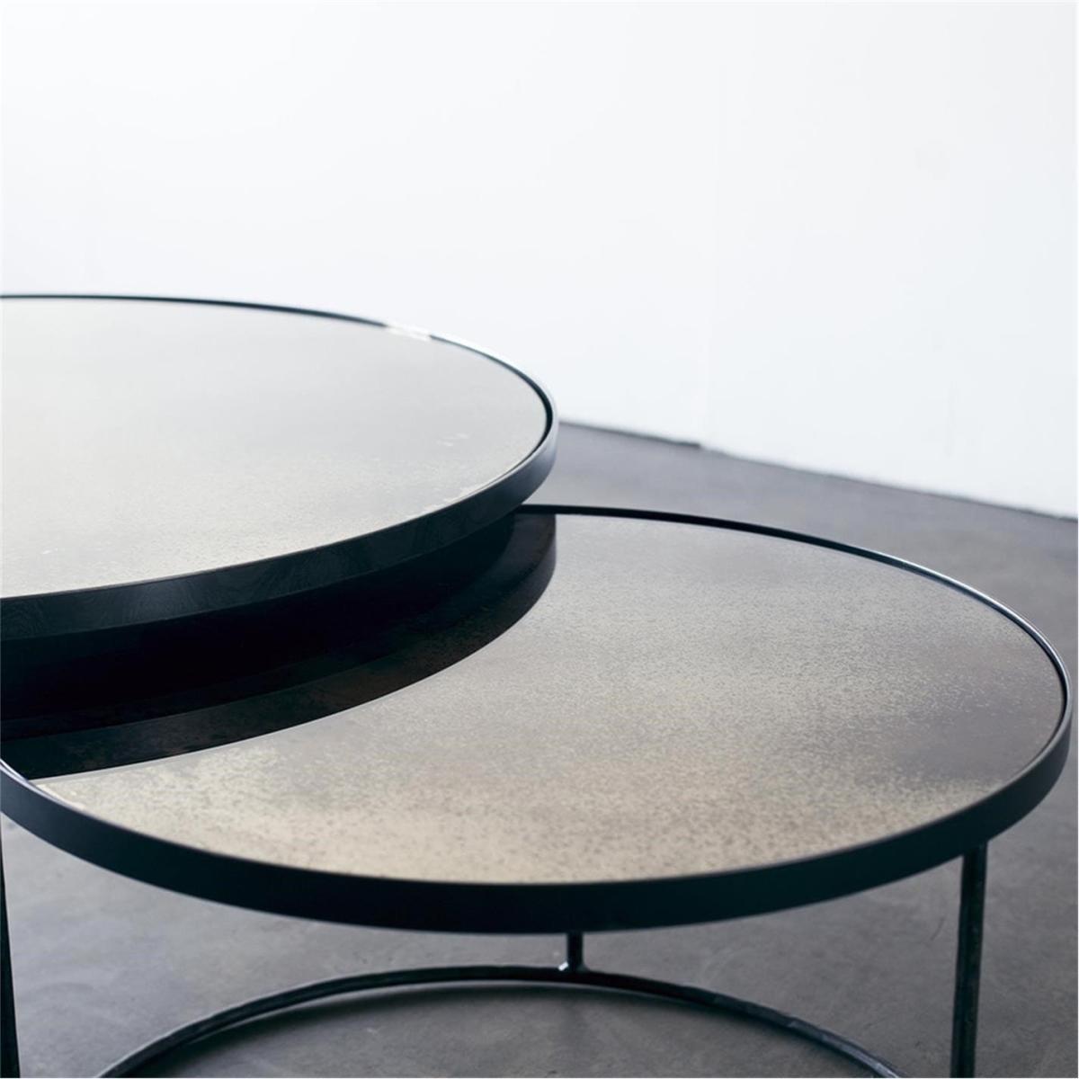 Add antiqued glamour to any room with this set of two Heavy Aged nesting coffee tables from Ethnicraft. Including two coffee tables which perfectly nest together when the smaller table is not in use, each table is on a striking round base. Topped with artfully worn mirrors, the tables will infuse any room with industrial chic and there are more stylish designs available from Ethnicraft.