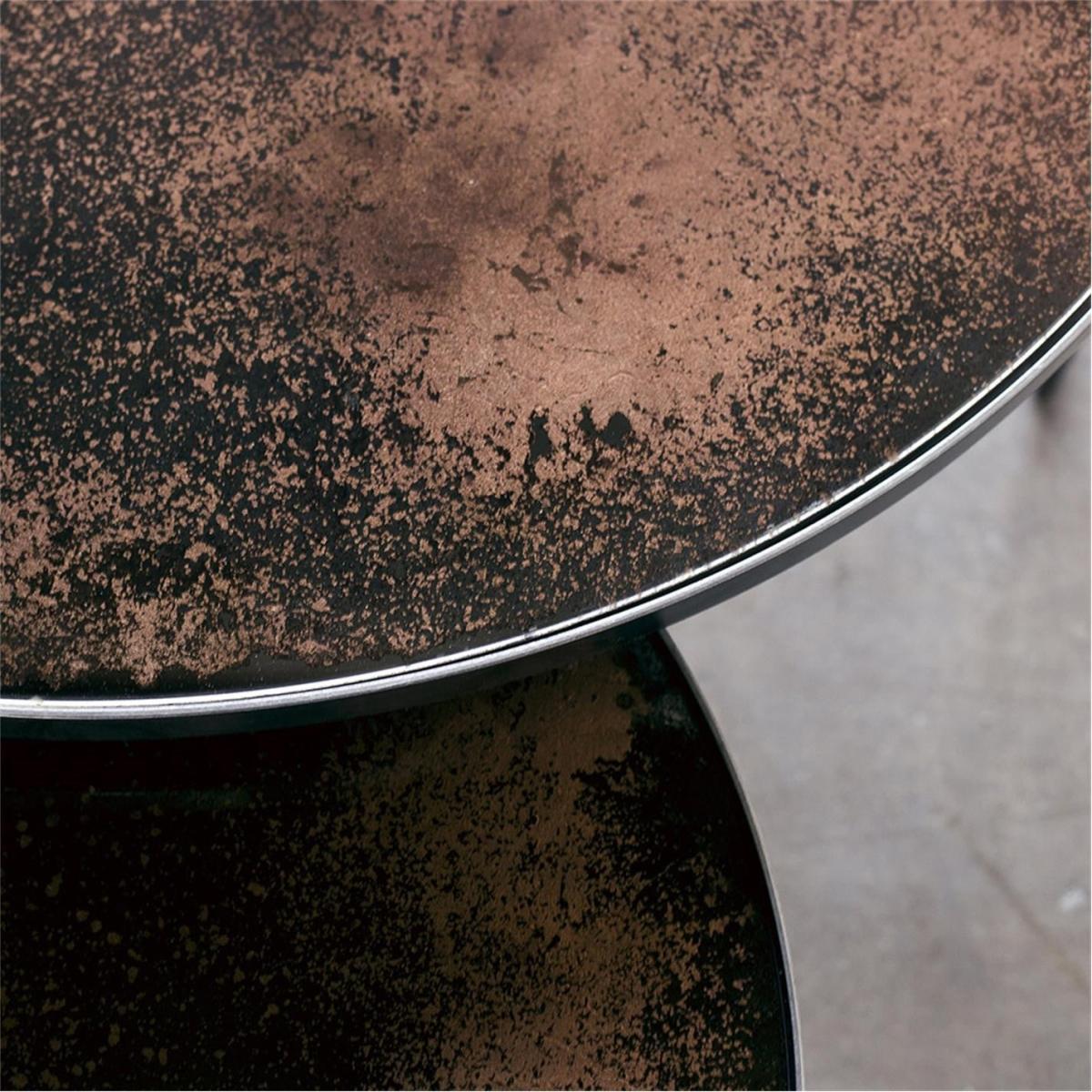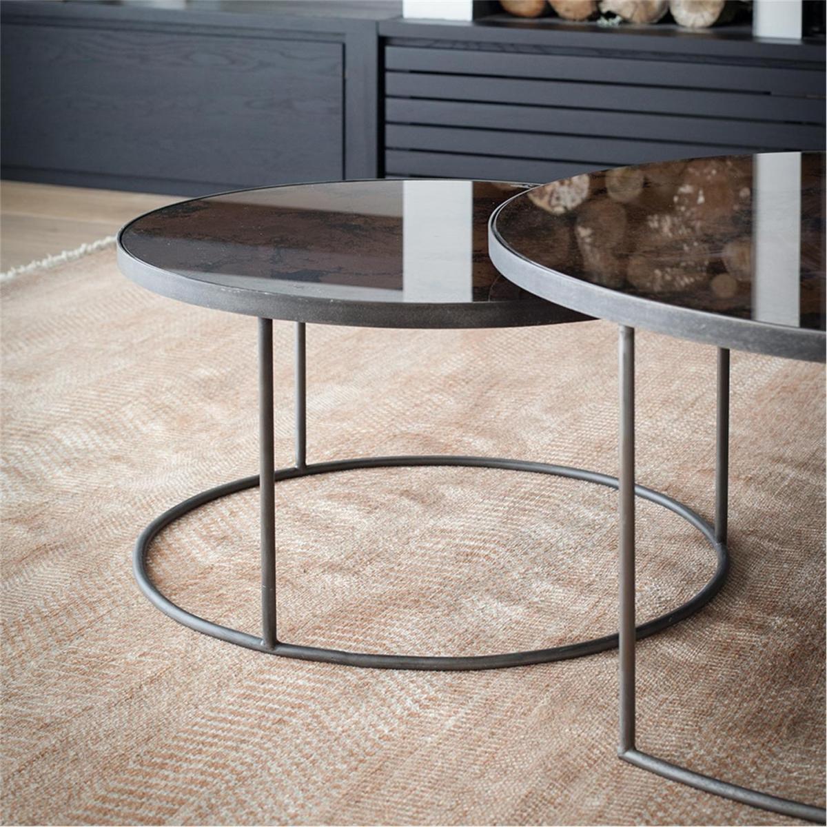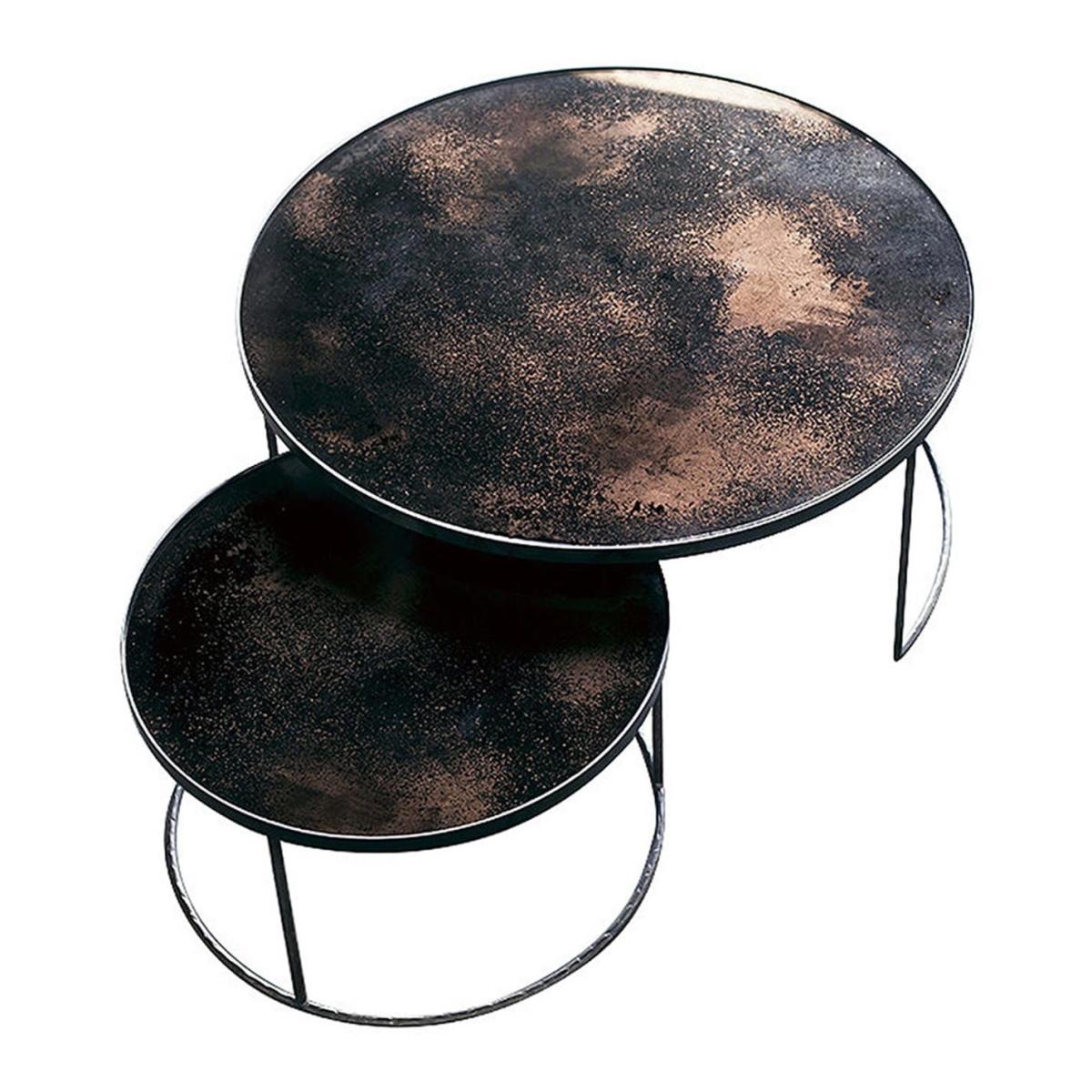 Add antiqued glamour to any room with this set of two Heavy Aged nesting coffee tables from Ethnicraft. Including two coffee tables which perfectly nest together when the smaller table is not in use, each table is on a striking round base. Topped with artfully worn mirrors, the tables will infuse any room with industrial chic and there are more stylish designs available from Ethnicraft.