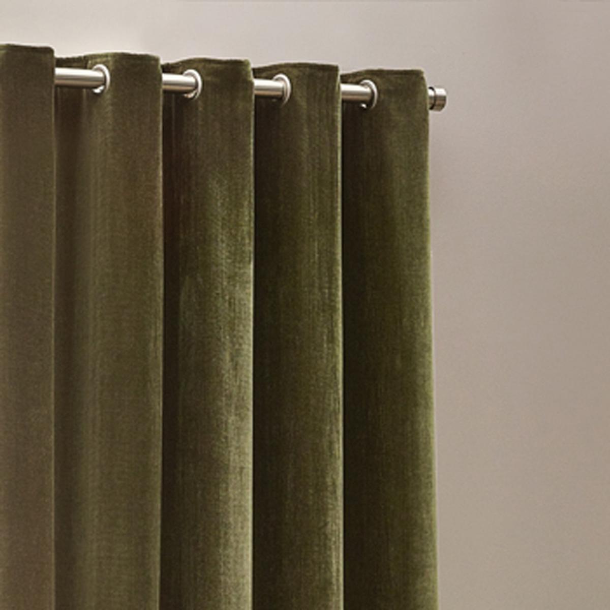 Introduce a contemporary vibe to your decor with our Heavy Chenille Olive Eyelet Curtains. These curtains feature soft and sumptuous velvet chenille fabric in a warm earthy tone. Installing them is hassle-free with the included eyelet rings. Crafted from 100% Polyester, they are both soft and durable. Complete the look with our coordinating Heavy Chenille cushion for a relaxed and stylish ambiance.