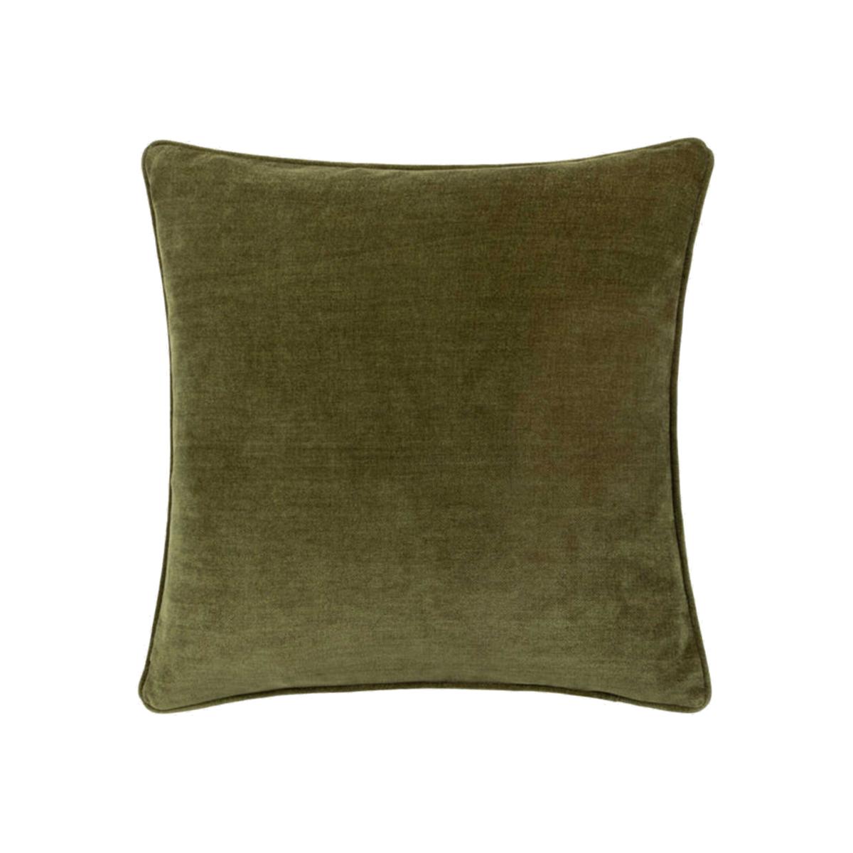 Heavy Chenille Piped Cushion Olive, Square, Green Polyester | Barker & Stonehouse