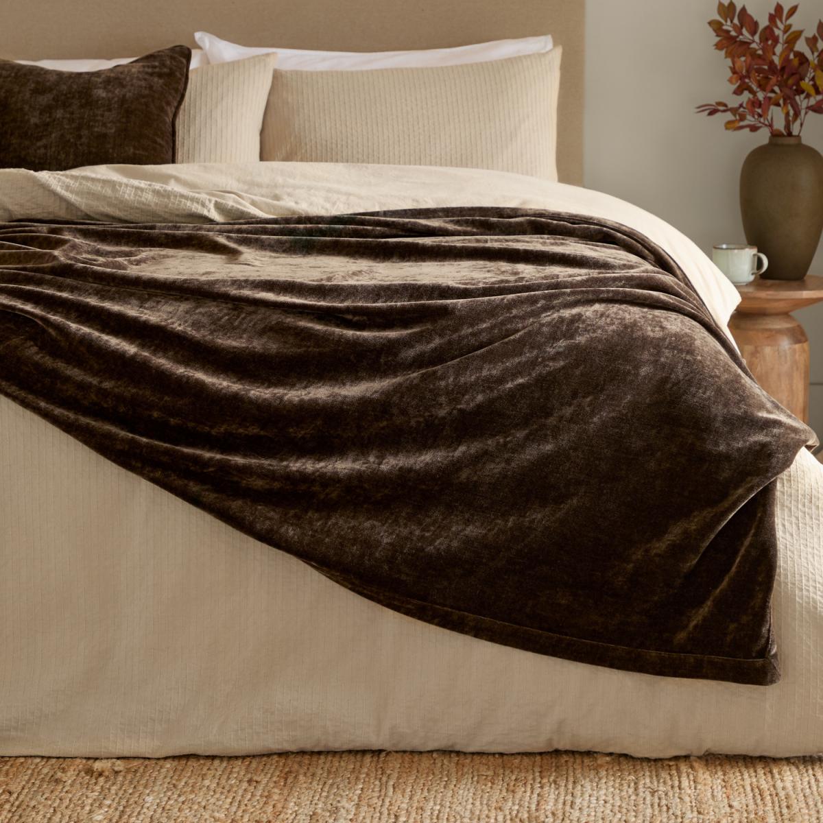 Heavy Chenille Velvet Throw - Brown / 200cm