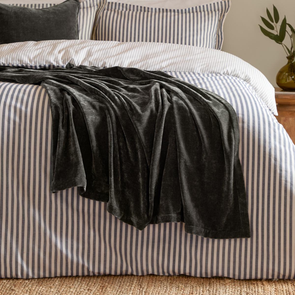 Heavy Chenille Velvet Throw - Charcoal / 200cm