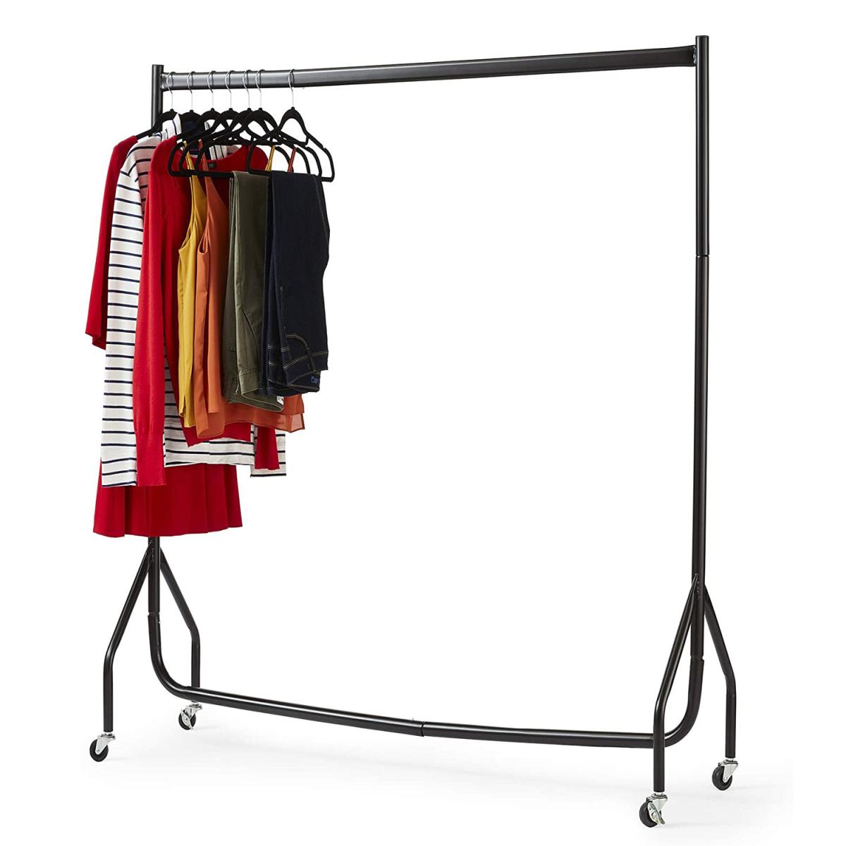 Quality heavy duty 6ft long x 5ft tall clothes rail. Very easy to erect, lightweight but yet very sturdy due to the heavy gauge steel material. The frame bars have a pop in clip system that allows you to take down a collapse as easy as it is to erect. Great for storing your garments on and will give you the extra hanging space that you need. Also, look at our clothes rail covers for protecting your clothes from dirt and dust. Can hold up to 95KG 4 castor wheels included.