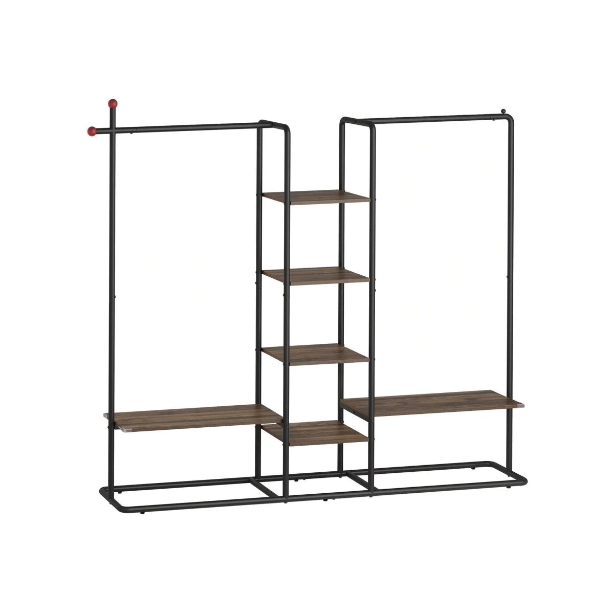 Elevate your space with this innovative matchstick-inspired clothes rail, perfectly merging aesthetics with practicality. This unique design adds a warm touch to any room while offering convenient hooks for hats and bags. With dimensions of 33.8 x 163.6 x 175.3 cm, it boasts two top rails, six shelves, and two matchstick-shaped hooks, providing ample space for organising clothes and daily essentials. Crafted from robust steel and quality particleboard, it supports up to 136 kg, making it ideal for heavy winter coats. Safety features include silicone corner guards, leveling feet, and an anti-tip kit. Easy assembly with clear instructions ensures a hassle-free setup.