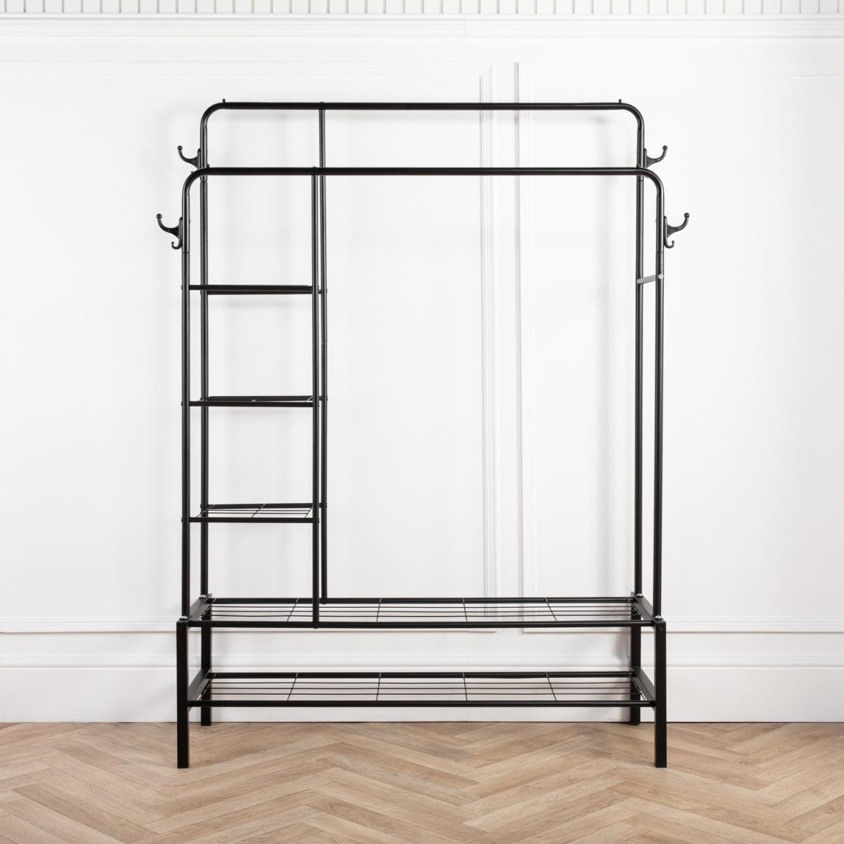 Heavy Duty Clothes Rail Strong and Sturdy Metal Black with Shoe Rack - Black